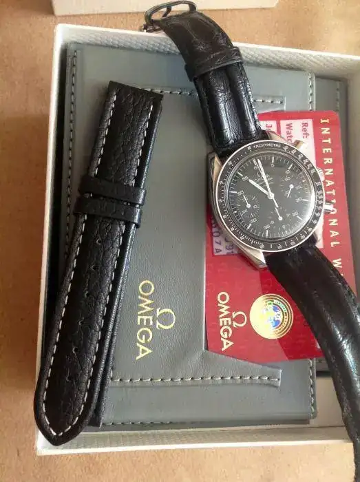 Buenas pongo en venta este speedmaster automático, en perfecto estado ya que esta revisado en Omega Suiza en el 2012, tiene caja, tarjeta omega, correa cuero y hebilla original de omega, plexi en perfecto estado. Vamos una oportunidad a 950 euros.
