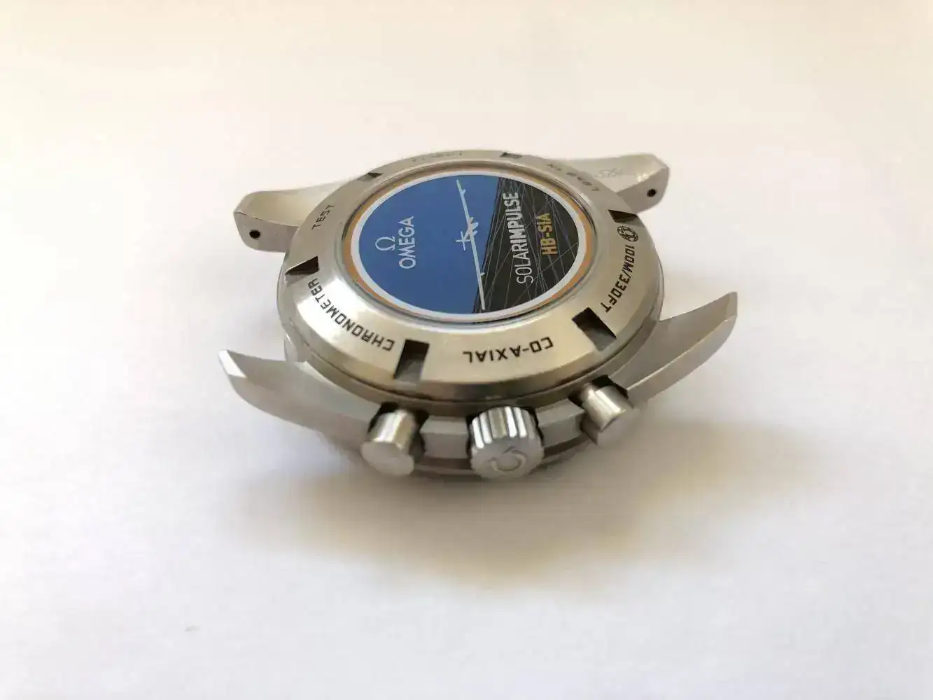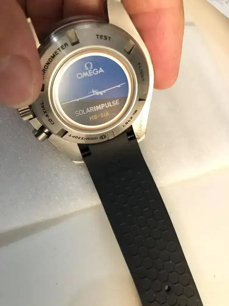 Este OMEGA Speedmaster HB-SIA Co-Axial GMT Chronograph hace honor al proyecto Solar Impulse y su objetivo de circunvolar la Tierra, utilizando solo energía solar. Luce una esfera negra en fibra de carbono, con pequeño segundero, un contador de 30 minutos y otro de 12 horas, junto con agujas centrales de cronógrafo y GMT.El bisel negro, con escala taquimétrica, está montado en una caja de 44,25 mm y titanio, con pulsera de caucho negra. Este guardatiempo de edición numerada incorpora el calibre 3603 Co-Axial. Grabado en el fondo de la caja, lleva el escudo del proyecto Solar Impulse HB-SIA