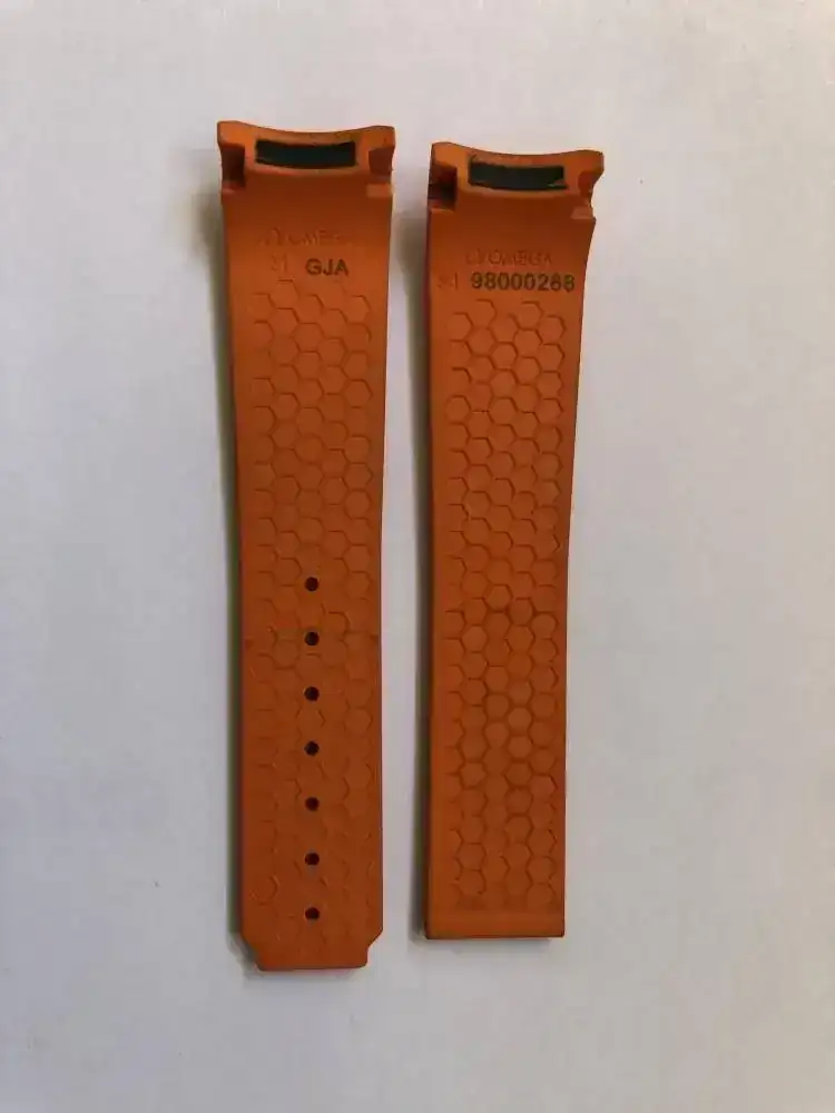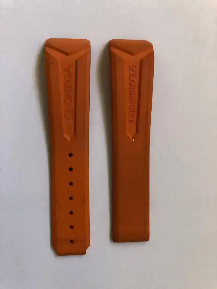 Brazalete: Caucho negro y caucho naranja, con deplo de titanio.