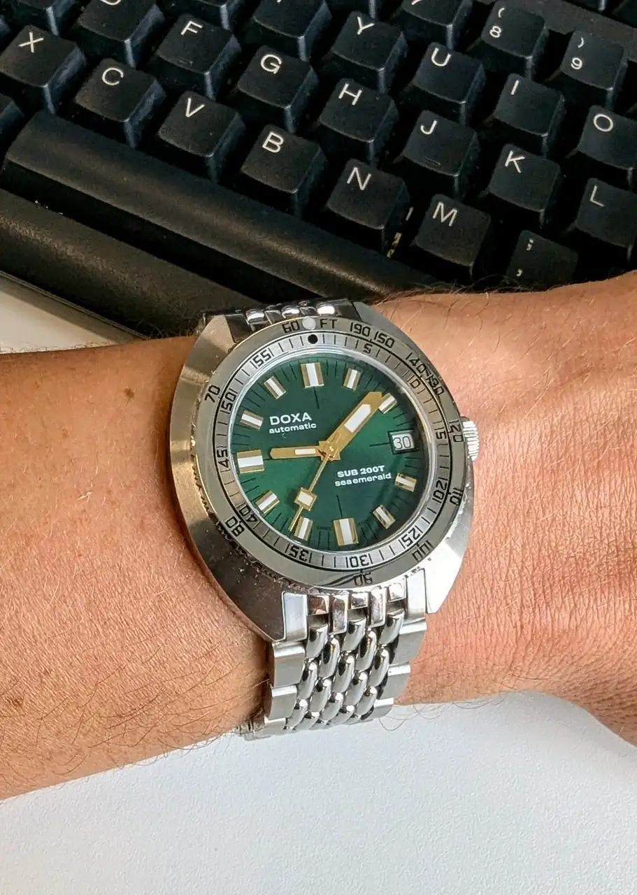 La semana pasada fueron llegando los 200t a relojerías. Tenía miedo que fuese demasiado pequeño como se dijo cuando Doxa los anunció pero tras ver alguna review me lancé y muy contentoMuy guapo ese Emerald, debe ser el primero del foro.