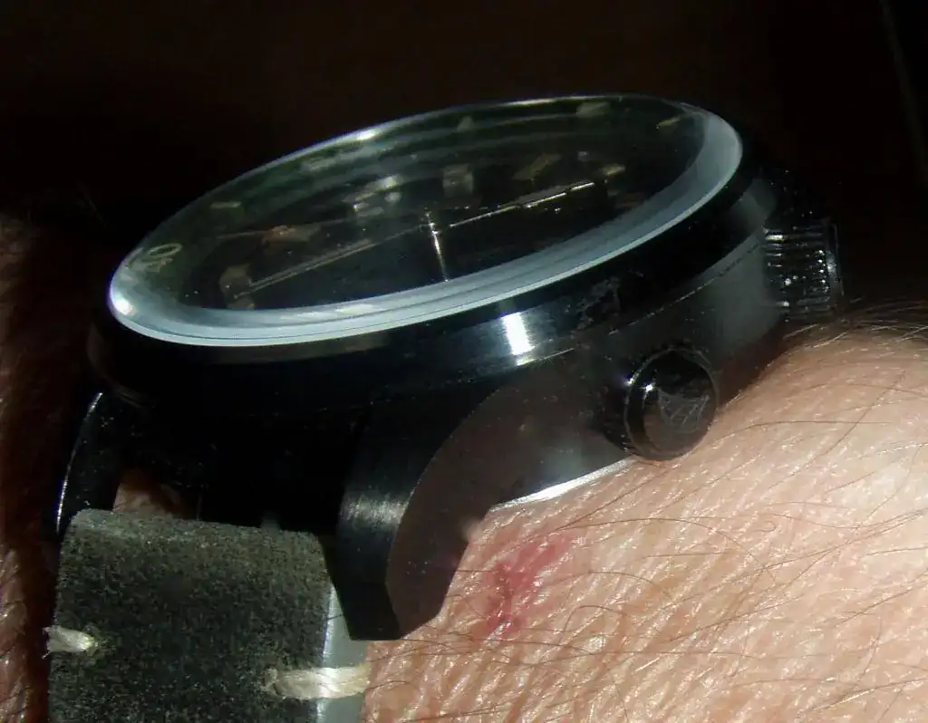 El acabado de caja es, se supone, en PVD incluyendo las dos coronas y la hebilla de la correa.