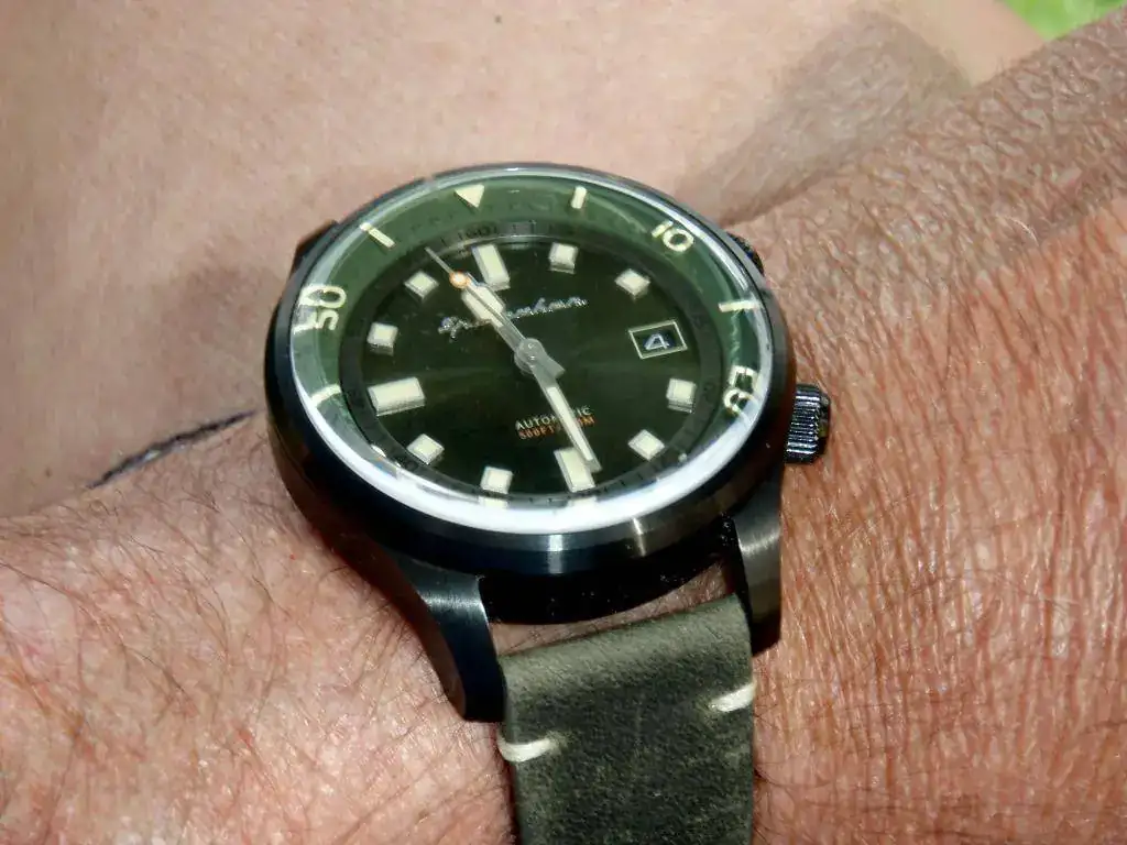 No encuentro nada similar a este verde oscuro "alga marina", en dial y bisel interior.