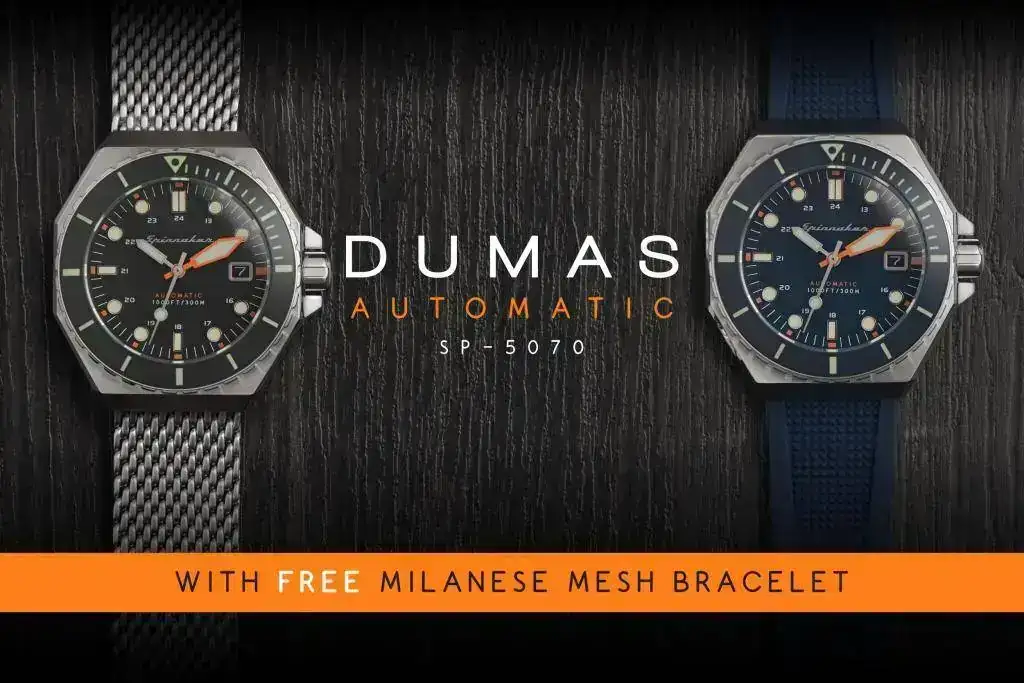 Buenas con todos, tenía unas semanas buscando algunos divers estilo vintage, no tenía pensado gastar mucho (Unos 400 dólares incluidos los impuestos locales) y viendo la poca oferta estaba algo desanimado por los precios, sin embargo, hoy Spinnaker ha puesto a la venta la actualización de su modelo Dumas, acabo de pedirlo en azul (SP-5070-02), ya hay algunos videos y reviews circulando. Por haberme pre-inscrito en la compra, me llegó un cupón del 25%. Adicional, han incluido el brazalete milanesa y el envío gratuito hasta Lima. Qué les parece?