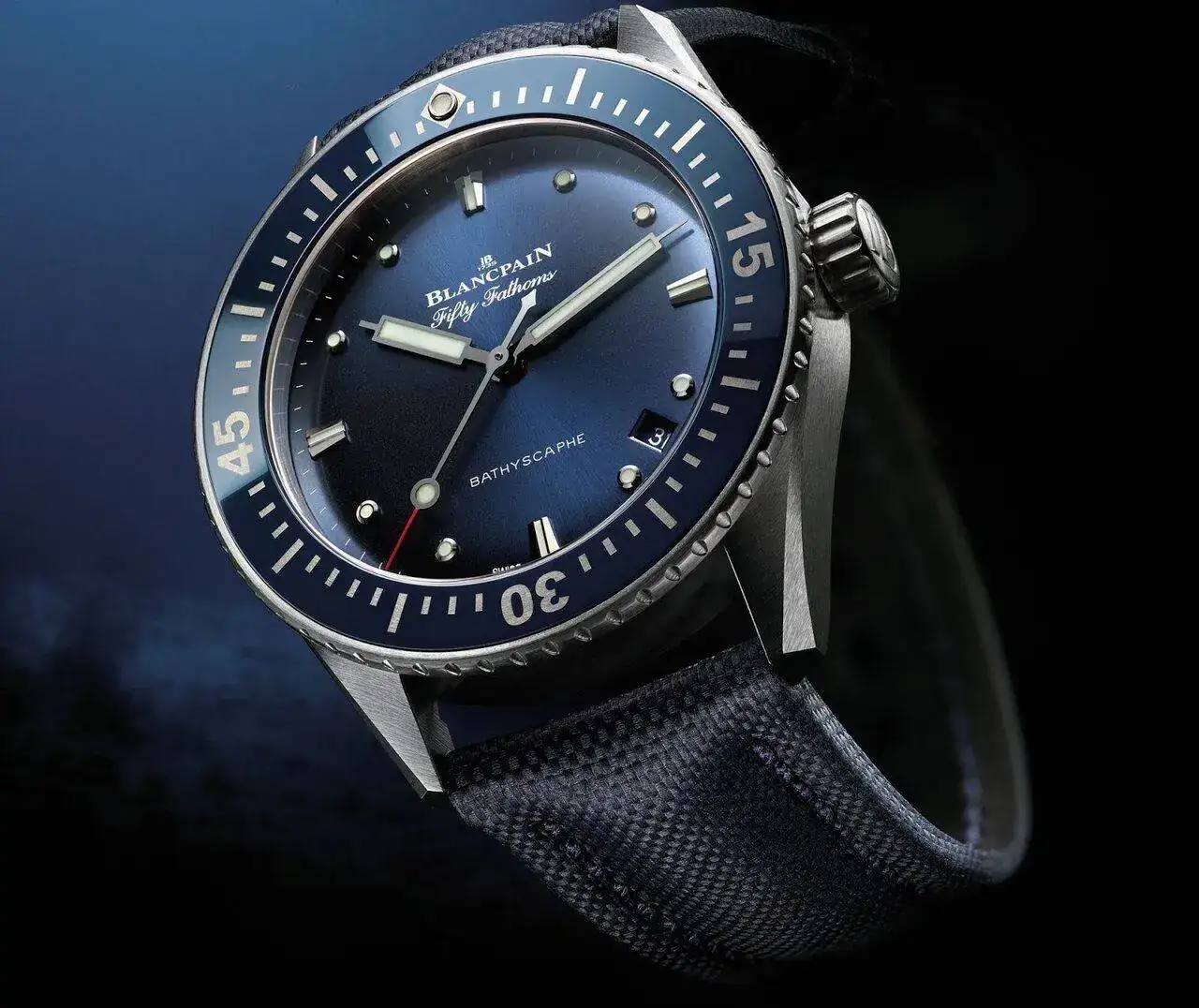 Actualmente tenemos al Blancpain Fifty Fathoms Bathyscaphe de 38mm, que presentaron en 2017, tiene 10,77mm de espesor... y con 100 horas de reserva de marcha.