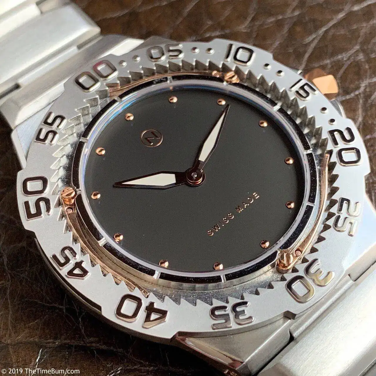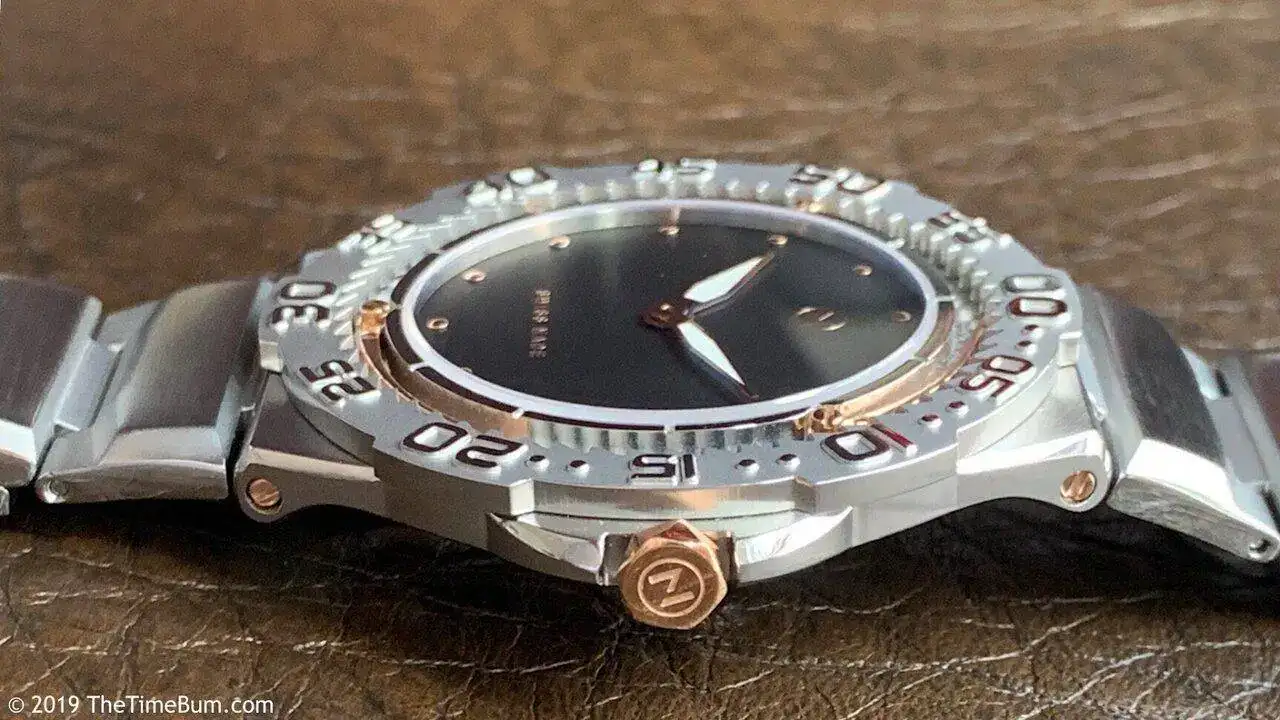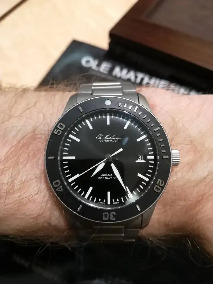 Pero adentrémonos en las micromarcas Swiss Made. Primero tenemos a la danesa Ole Mathiesen con su 1919 Navy Diver, que para sus 120m de resistencia se queda en 10,00mm justos, gracias a su calibre ETA 2892:
