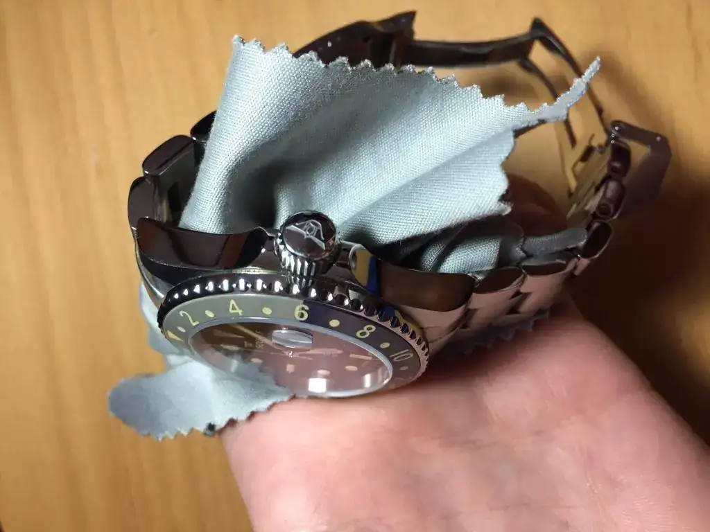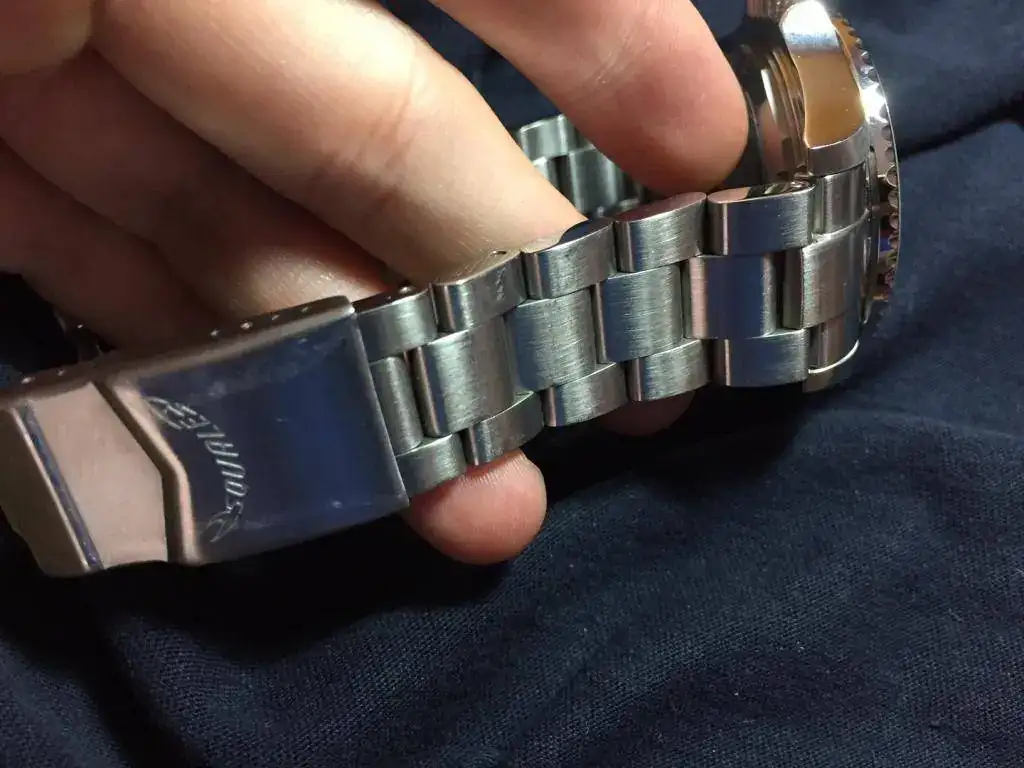 El reloj no ha sido sumergido nunca, y según mi opinión no se le ha dado demasiado uso, me lo habré puesto máximo unas 30 veces en casi un año. Aún así presenta algunas marcas de uso, más que nada en el cierre del armis (que se puede observar en la fotos) que aparecieron en las primeras puestas, y en un par de eslabones cerca del cierre (que en caso de molestar se podrían sustituir por alguno de los 4 sobrantes que van incluidos).