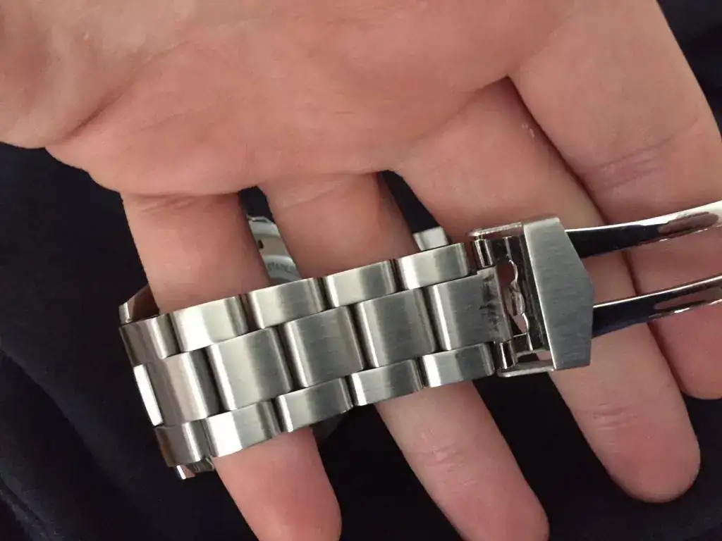 . El armis tiene endlinks macizos y le da una presencia contudente al reloj. Viene con dotación completa.