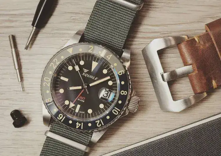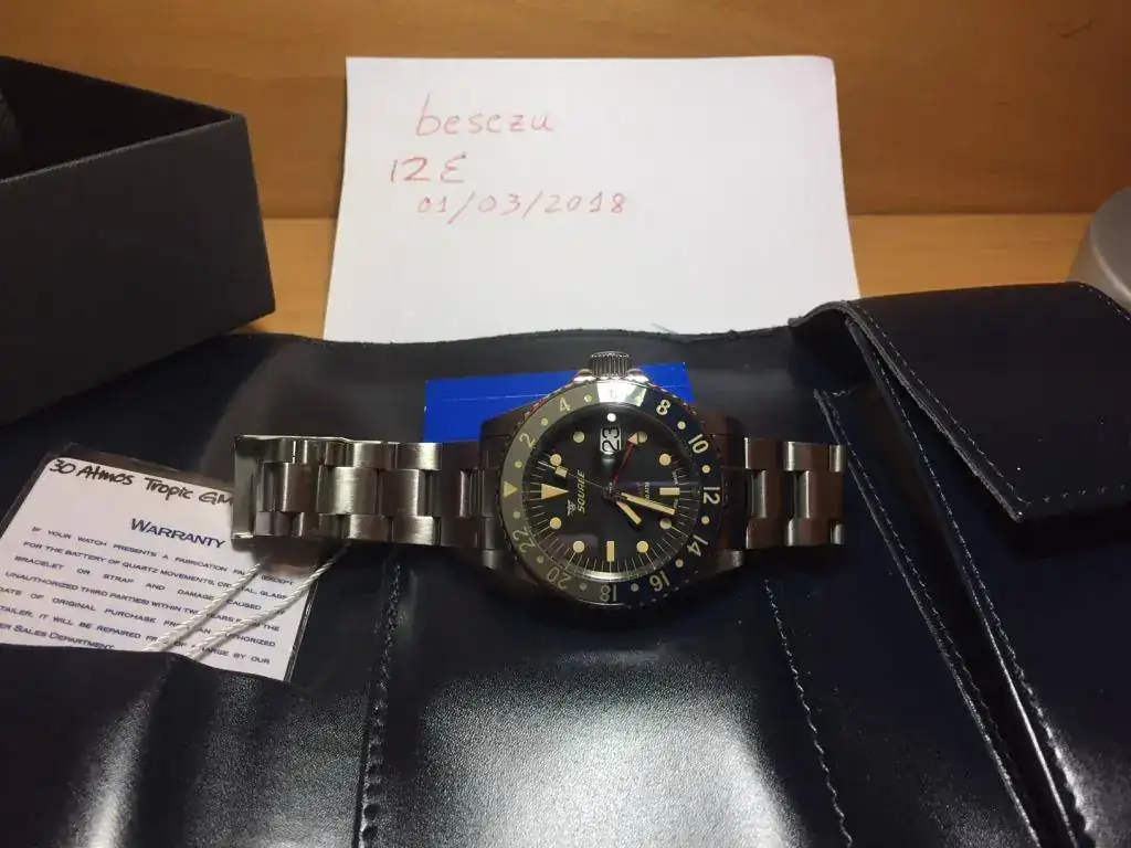 Hola, vendo este poco visto reloj Squale con esfera Tropic, sumergible 300m y con función GMT.