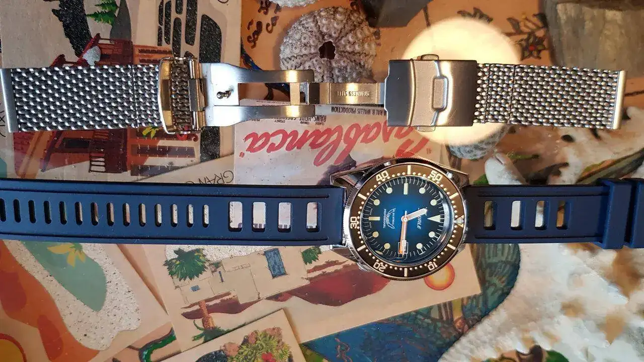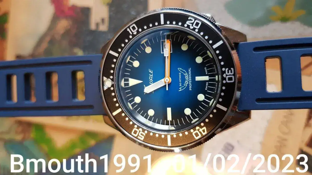 Pongo a la venta un Squale 50 Atmos 1521 Blue Ray, reedición 2020 con dial Sfumato o difuminado, de azul en el centro a negro hacia los bordes. El reloj está impecable y full set. El precio lo ajusto a 750 euros envío incluido por mensajería a territorio nacional, teniendo en cuenta que es una edición poco habitual por el color del dial Sfumato y los aranceles de importación que tuve que pagar. Lo vendo con una milanesa Squale y una correa Squale tipo Rallye. No se incluye el caucho Borealis azul que se ve en las fotos (si interesa a alguien con el caucho serían 780 euros). Es de Diciembre de 2020 comprado nuevo en Gnomon Watches. Soy el único propietario y está impecable. Cualquiera que me conozca sabe que cuido los relojes al máximo.