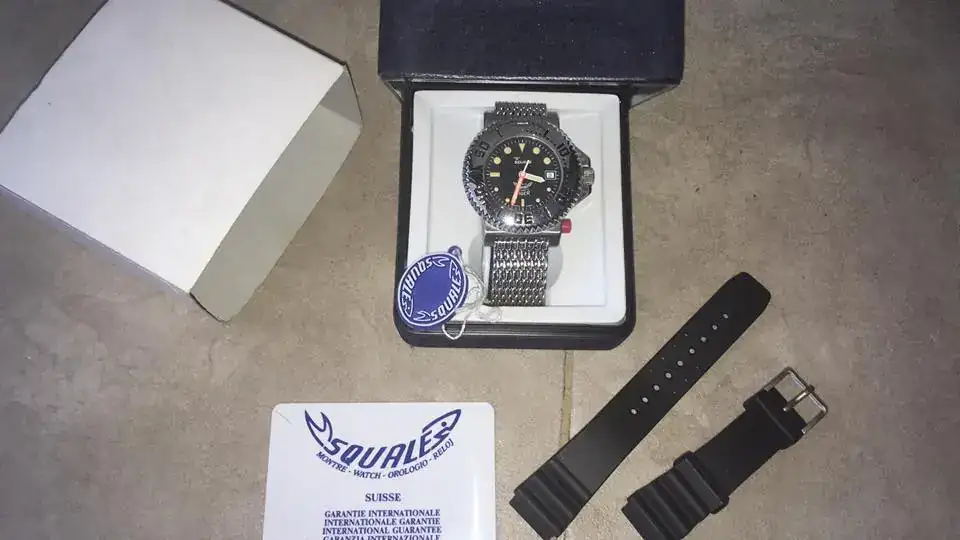 Hola, pues si compañero...saco al venta el famoso Squale Tiger que fue mi primer automatico, lo conserve todo este tiempo por eso pero no lo uso nada por ser dial negro, ya sabeis mis gustos...y negro como que no...asi que aqui esta disponible para su nuevo dueño