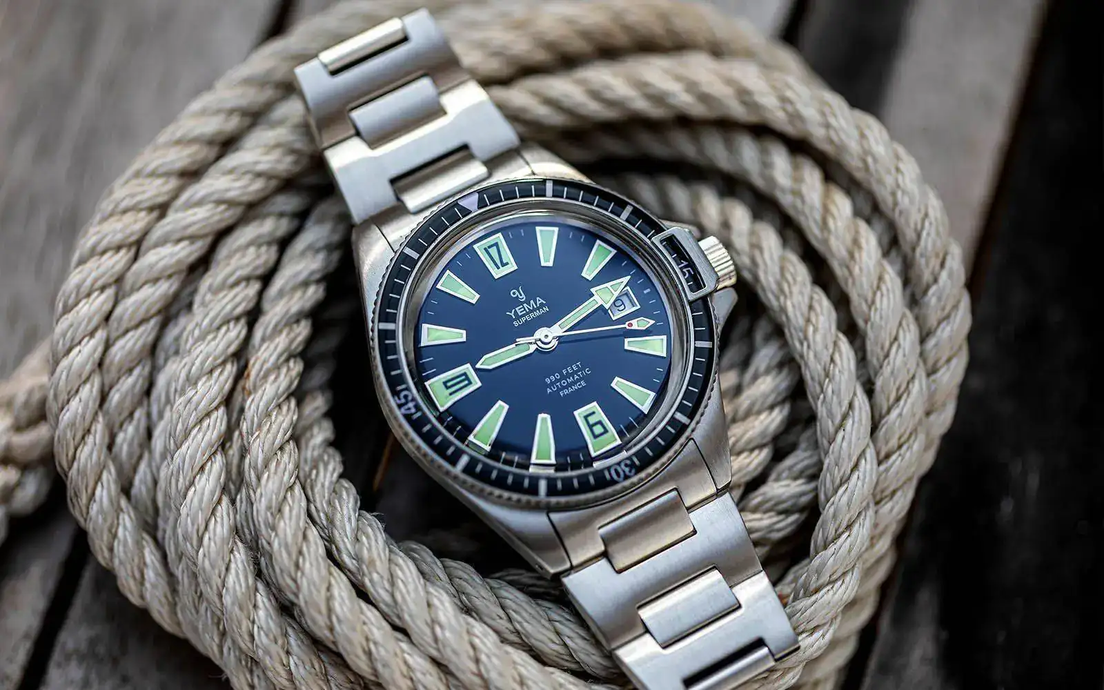 Por otra parte me gusta mucho tambien el Yema Heritage 63. Un reloj tambien con inspiración vintage. Me gusta mucho su dial y el bloqueo de bisel lo veo muy original, además de llevar zafiro abombado con AR. Tiene 39mm de diámetro y un lug to lug de 47mm (creo). Por contra tiene 19mm de ancho de asas, así que tocaría gastarse un extra en alguna correa.