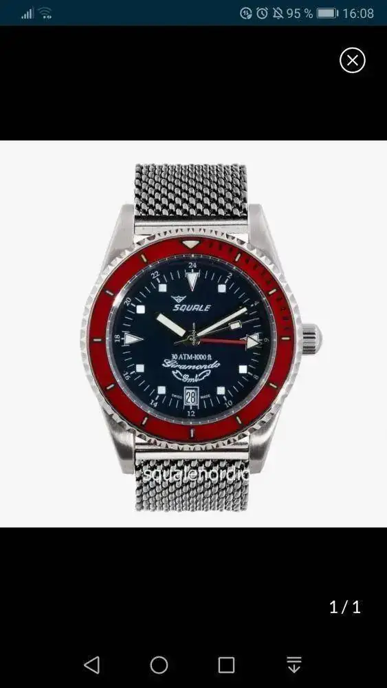 Por una parte este el Squale Giramondo. Reloj con estilo retro que son los que le gustan. Su bisel rojo creo q aportaría algo de color a la caja que ya tengo. Lleva la complicación GMT, que es la que más le gusta y su caja es diferente a los otros Squale. Sus 39mm estoy seguro q encajarían muy bien en mi exigua muñeca. Además su lig to lug es de 48mm, así que bien.