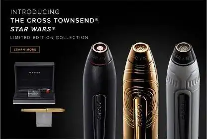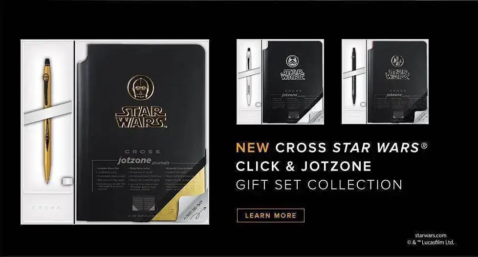 Por su parte, Cross ha reinventado su exitosa gama Townsend decorándola con motivos alusivos también a La Guerra de las Galaxias.