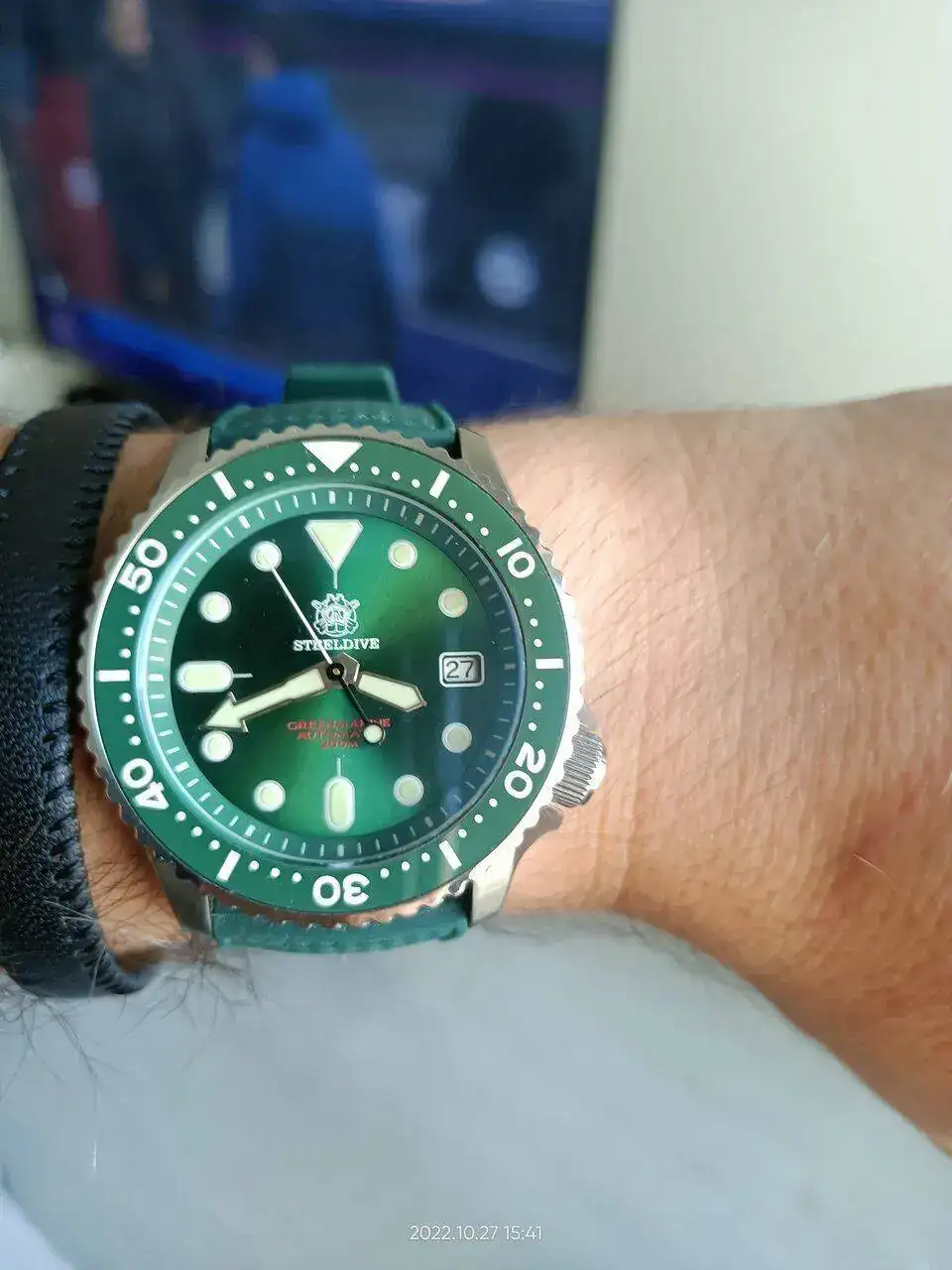 Saludos acabo de adquirir mi segundo reloj un estupendo steeldive 1996 con el Seiko nh35 bisel de porcelana y cristal de zafiro.