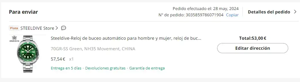 muchas gracias por la opinion. Creo que me iré a probar el verde. Tengo curiosidad por ver qué tal van los relojes chinos. por debajo de 60 euros, un zafiro automatico me causa expectación. Acostumbrado a suizo y japones, veremos el resultado (aunque por lo que leo en este foro, estan bien)Yo tengo los tres, el verde es muy bonito, pero tiene algo menos legibilidad que el negro por el contraste entre agujas y dial. El azul es el que tiene el dial que más destaca con la luz.