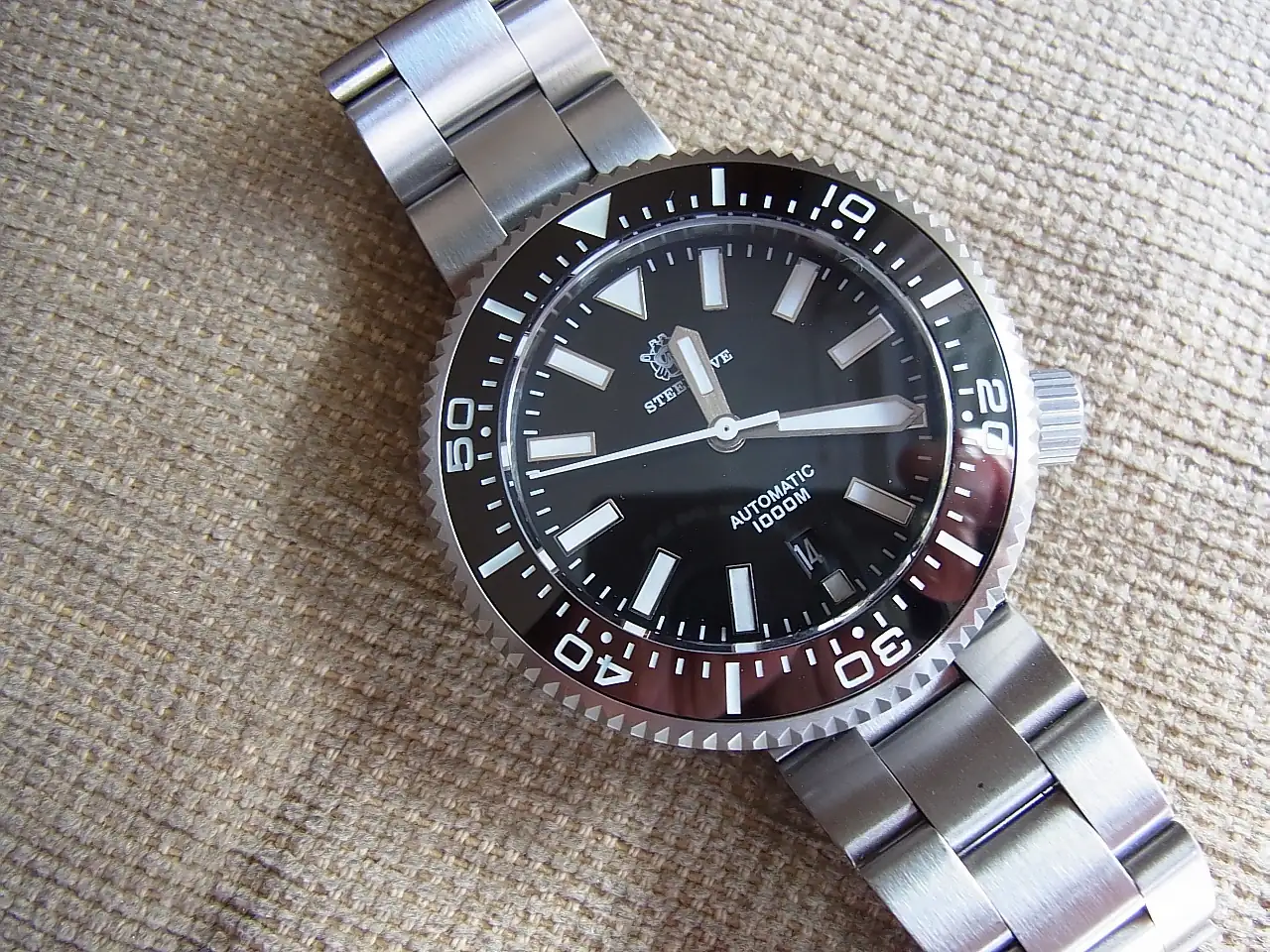 -- Esfera negra, actualmente no disponible en fábrica, con índices aplicados . Superluminova suiza BGW9 azul en agujas e índices del dial y del bisel.