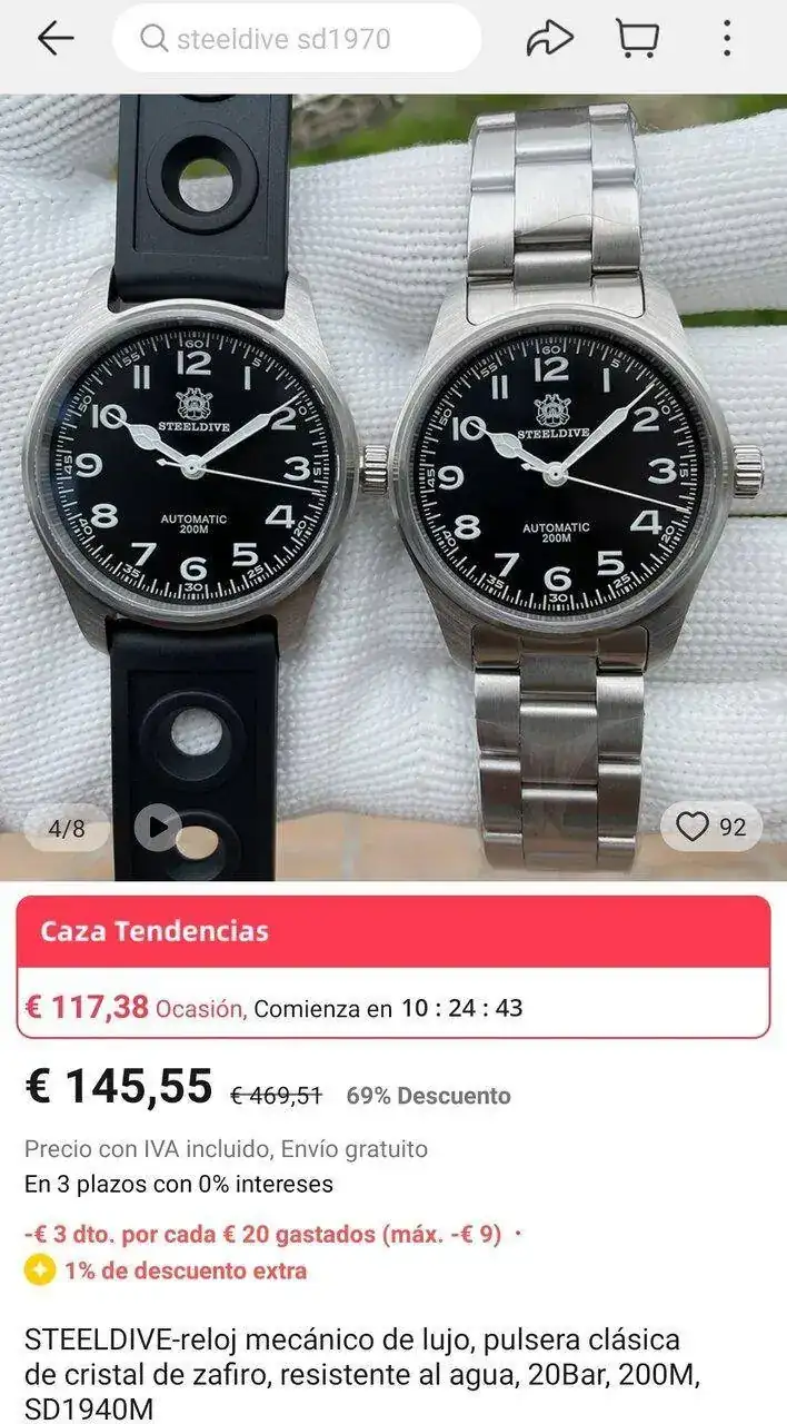 )Me gusta mucho el hamilton murph, el diseño, pero el precio es muy elevado para mí. También me he encaprichado de pillar un mecaquartz. He encontrado un reloj que cumple ambas cuestiones, pero tengo dudas de si comprarlo. Nunca he comprado en aliexpress y no conozco esa marca. He leído acerca de steeldive, no sé si tendrán alguna relación.