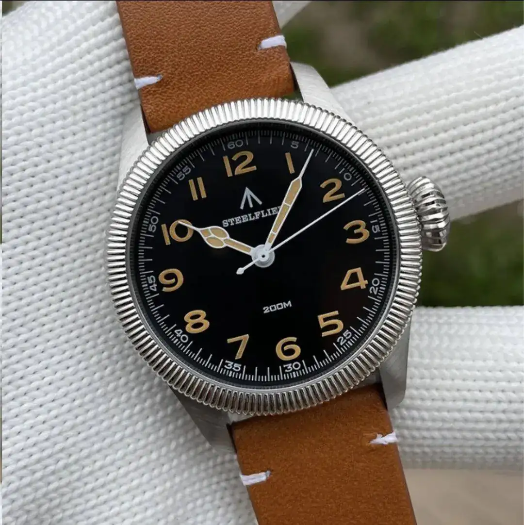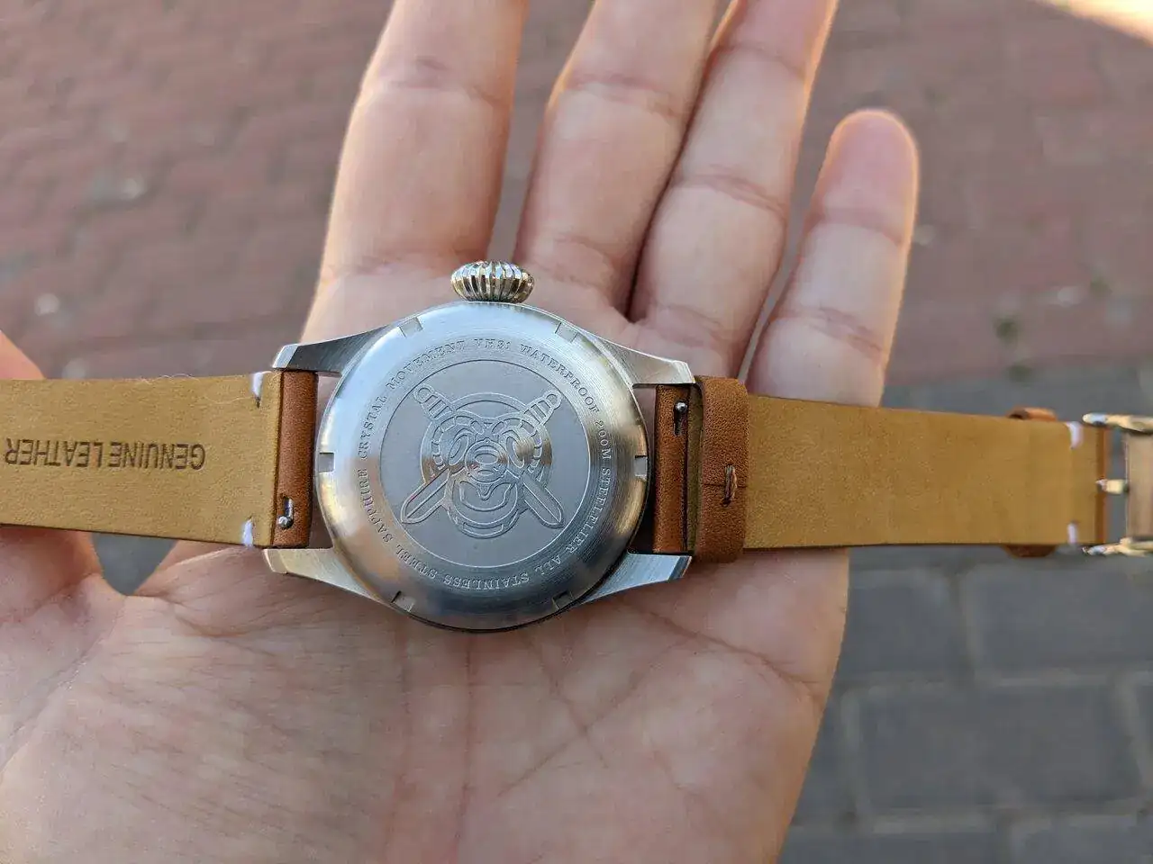 La empresa es Steeldive, la trasera lo demuestra también. Por tanto, es cierto lo de que los relojes de piloto de la marca van a llevar el logo de Steelflier. Gente se quejaba de que pusiese Dive en la esfera de un reloj que no es de buceo: