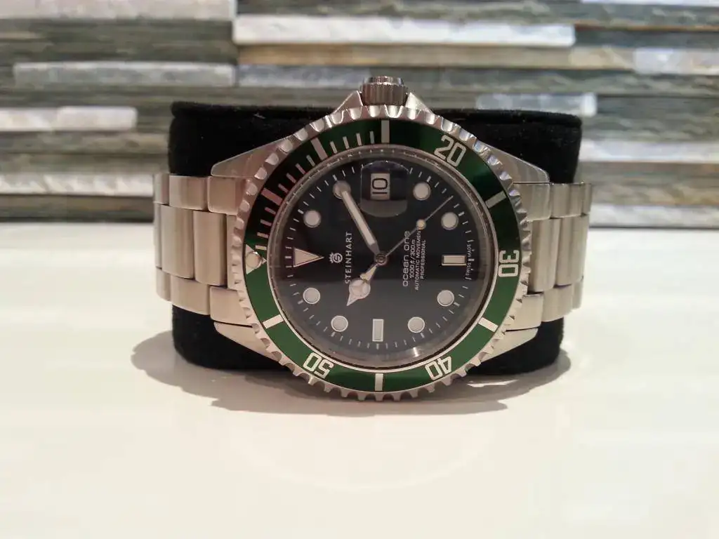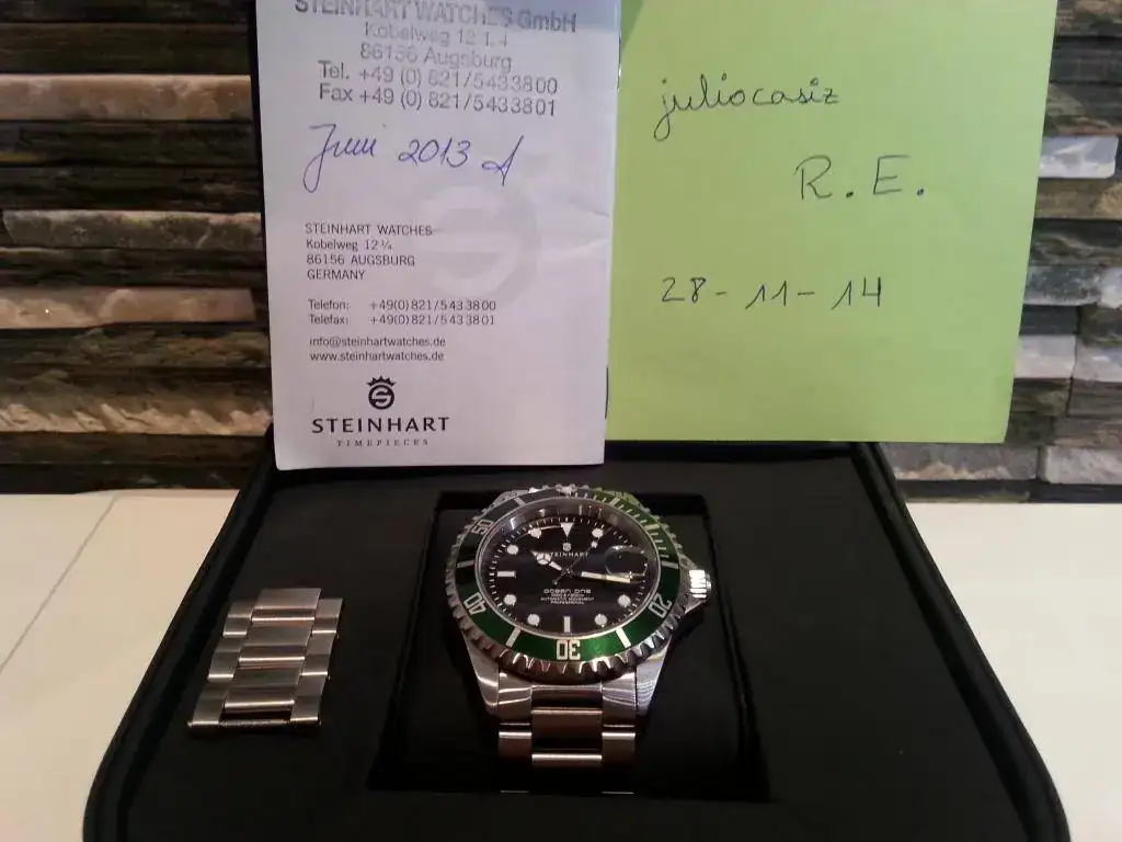 Aunque sin tenerlo claro en esta ocasión saco para cambiar uno que llegó hace unas semanas a casa, el Steinhart 1 ocean green. El motivo es que la lupa que no me termina de convencer aunque él en sí es un relojazo. Cuando se habla por el foro de las calidades de Steinhart realmente no te das cuenta hasta que tienes uno en las manos y ves su contundencia. Me gustaría cambiarlo por ello por otro Steinhart ajustando diferencias si es necesario, aunque si veo que va a ser complicada la operación estudiaría ofertas para su venta. Especialmente me gusta para su el cambio el STEINHART "