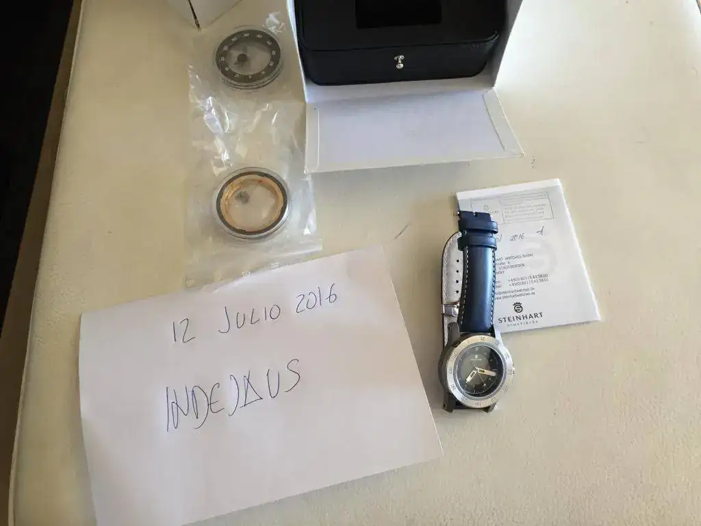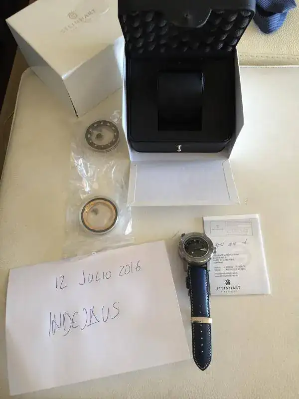 Tiene pocas puestas, y cambiado el bisel al metálico, vendida la correa que venía gris-verdosa porque se manchaba con mirarla. Nada grave, le compré una hirsch azul trooper de las nuevas y un cierre deplo hirsch.