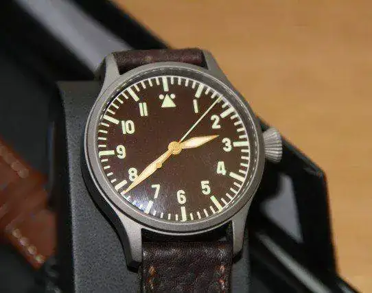 Dial: marrón oscuro con agujas doradasy superluminova C3 verde