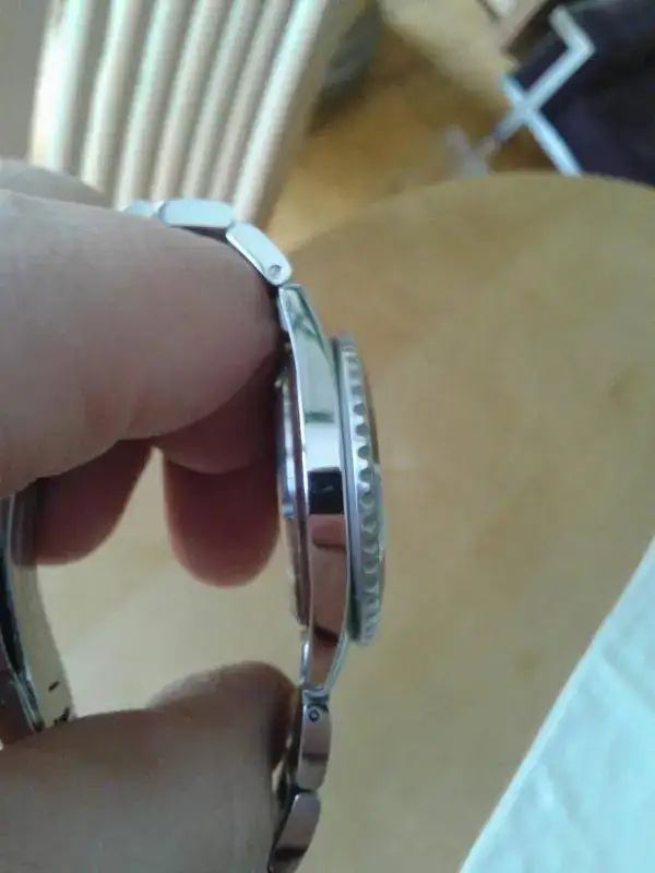 Saco a la venta esta pieza, no sin cierta pena, con vistas a hacer una pequeña remodelación en la caja. Es uno de los conocidos del foro, pero más abajo están sus características detalladas. El reloj tiene un año y como todos mis relojes ha sido bien cuidado. El único desperfecto visible es un pequeño roce en el bisel (a la altura del 30, he intentado que se viera en la foto) y los inevitables "pelillos" del cierre. Está ajustado para muñeca de 19 cm y sobran dos eslabones. Le queda garantía vigente durante el mes de noviembre. No me interesan cambios, tengo la otra pieza a la vista. Set completo con caja y demás, como veis en las fotos