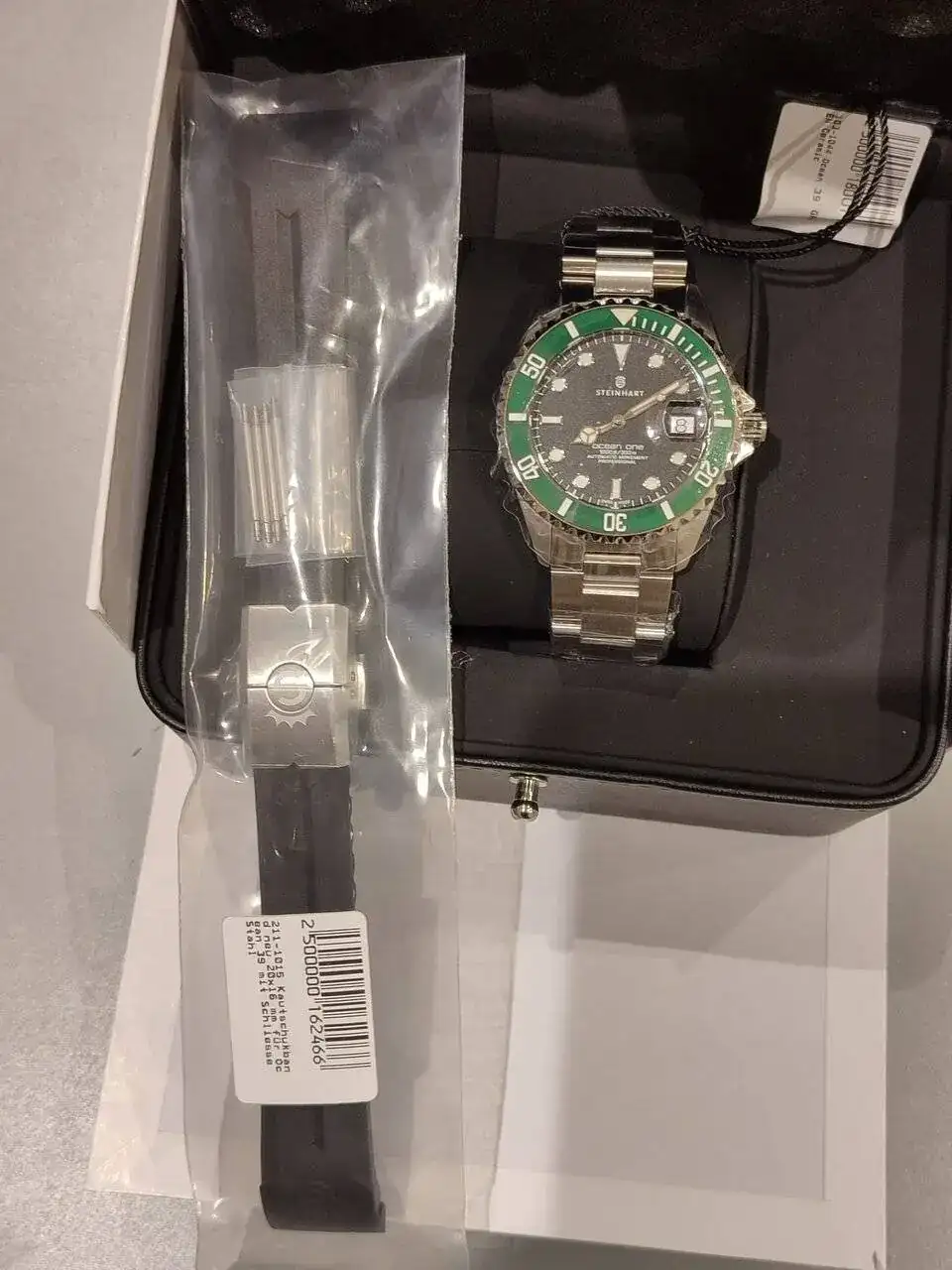 Tras casi 1 año mas tarde de tenerlo a buen recaudo en un armario y sin estrenar, me decido a vender este precioso reloj STEINHART que monta un calibre automático suizo, y que está completamente nuevo a estrenar, con los plásticos y completo de documentación tal y como me lo entregaron en su día