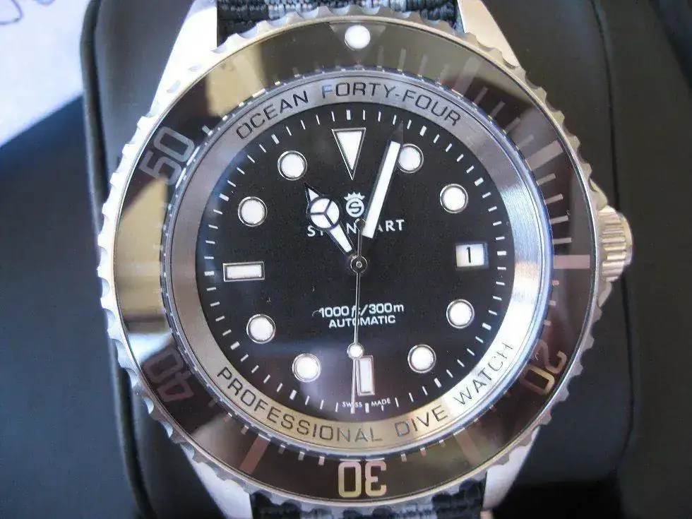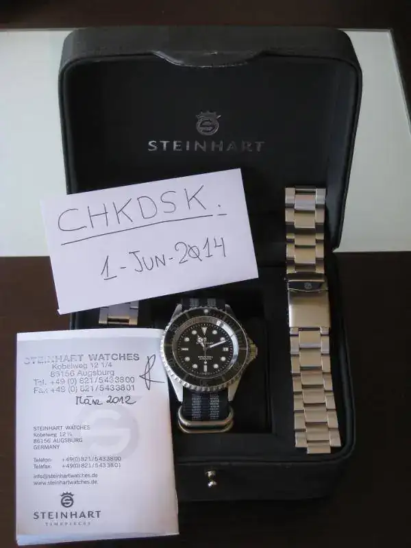 Vendo este magnífico STEINHART "OCEAN 44 automatic". El reloj es de Marzo de 2012 y se entrega con toda la dotación: caja de cartón blanca de steinhart, estuche de piel, armys con todos sus eslabones y manual de instrucciones con garantía. Mínimas microrrallas en los laterales de la caja y en el cierre del armis.Se encuentra en perfecto estado de funcionamiento, en parámetros COSC.