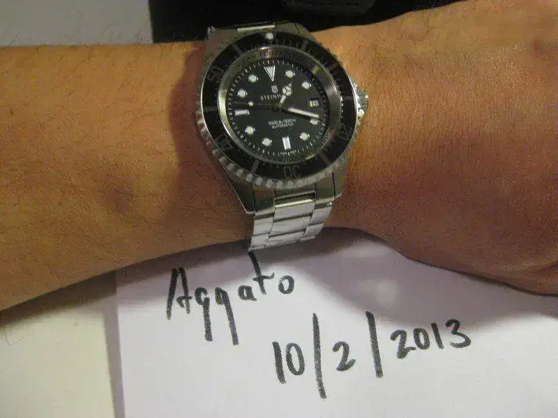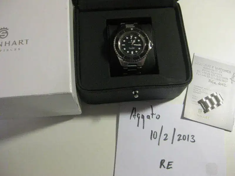 El reloj es de Marzo de 2012 y se entrega con toda la dotación: caja de cartón blanca de steinhart, estuche de piel, armys con todos sus eslabones y manual de instrucciones con garantia.