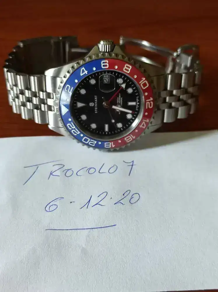 Hola a todos. Vendo mi recién llegado Steinhart hace 4 días. Su estado es nuevo. Solo puesto en casa y en hora para comprobar la exactitud. Siempre quise tener un GMT y me había fijado en este, por sus magníficos acabados y porque sabido de todos es que Steinhart fabrica muy buenos relojes. Pero después me he dado cuenta de que los GMT no son para mí, así que tiene que salir.