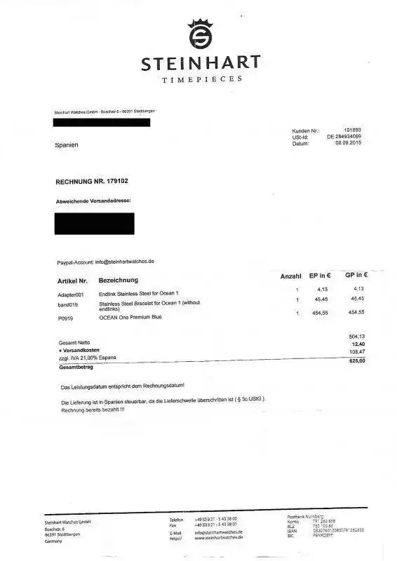 En la factura de la foto no va incluido el precio de los end link de repuesto y el bisel cerámico de repuesto, que costó unos 50 euros.