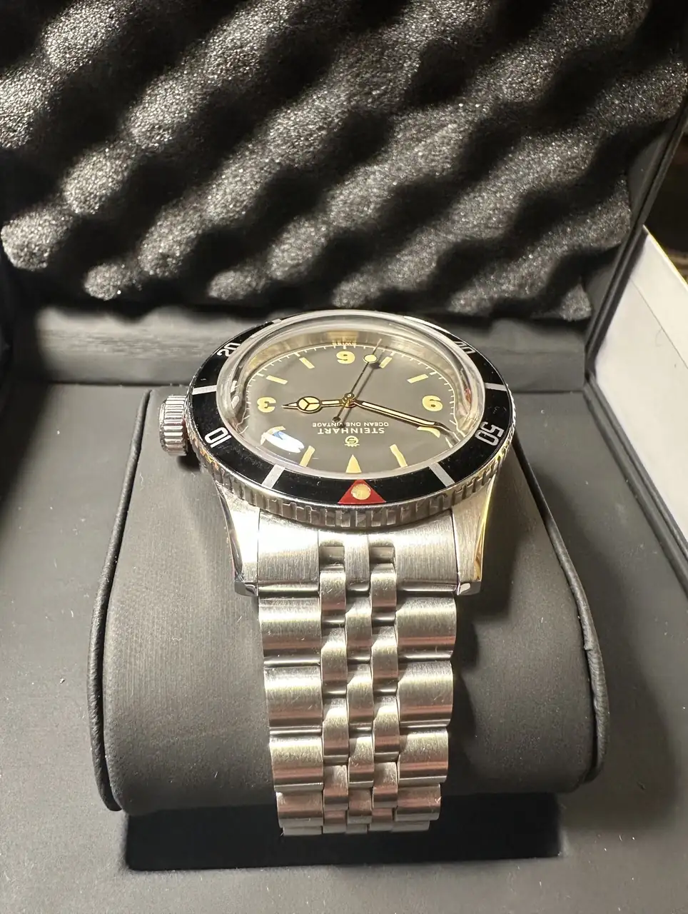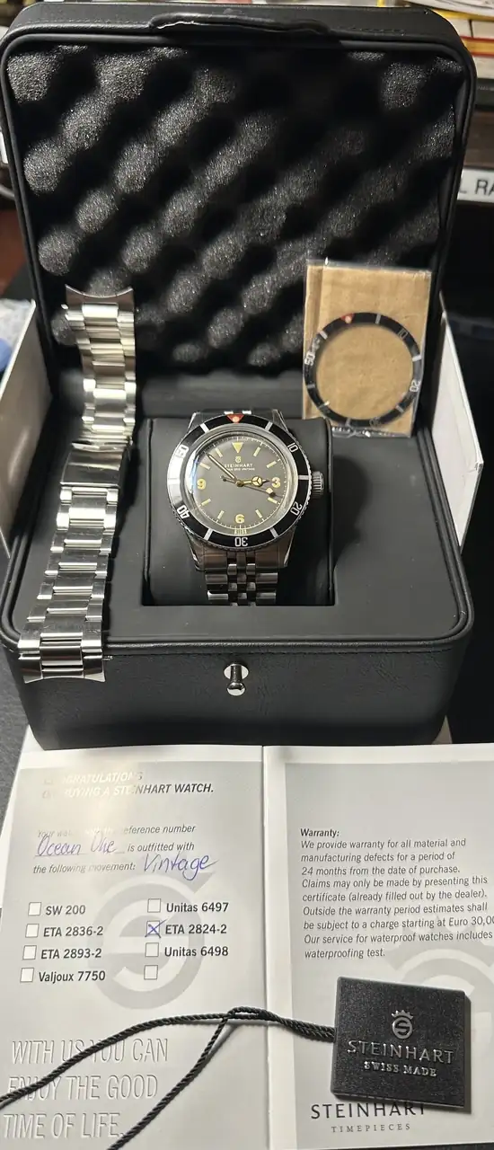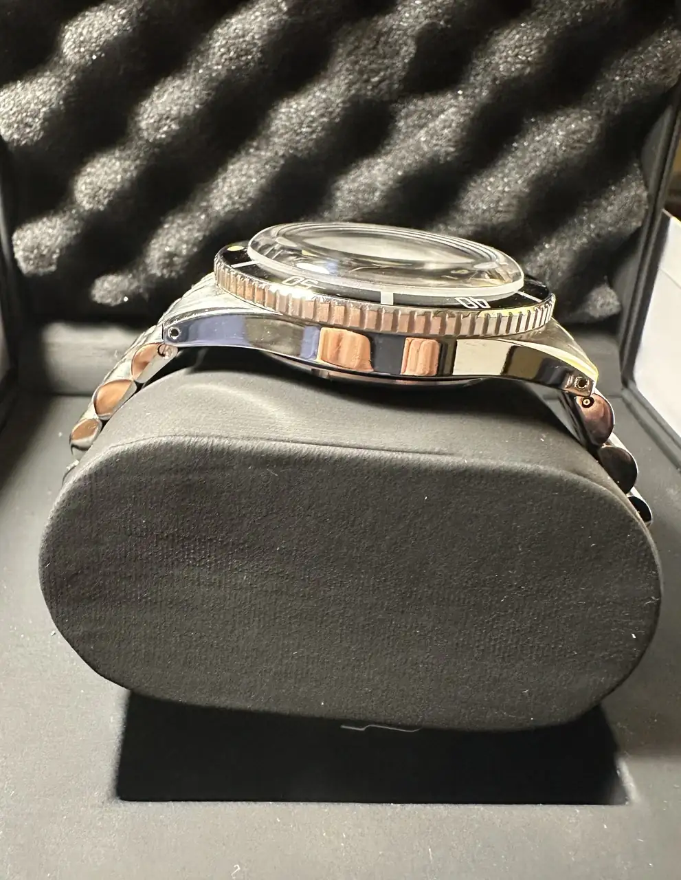 Brazalete: el conjunto viene con dos armis originales adquiridos con el reloj uno Oyster y otro Jubilé. Además incluye un bisel de repuesto que adquirí porque no sabía cómo resultaría la bolita de lumen superior, está sin estrenar.