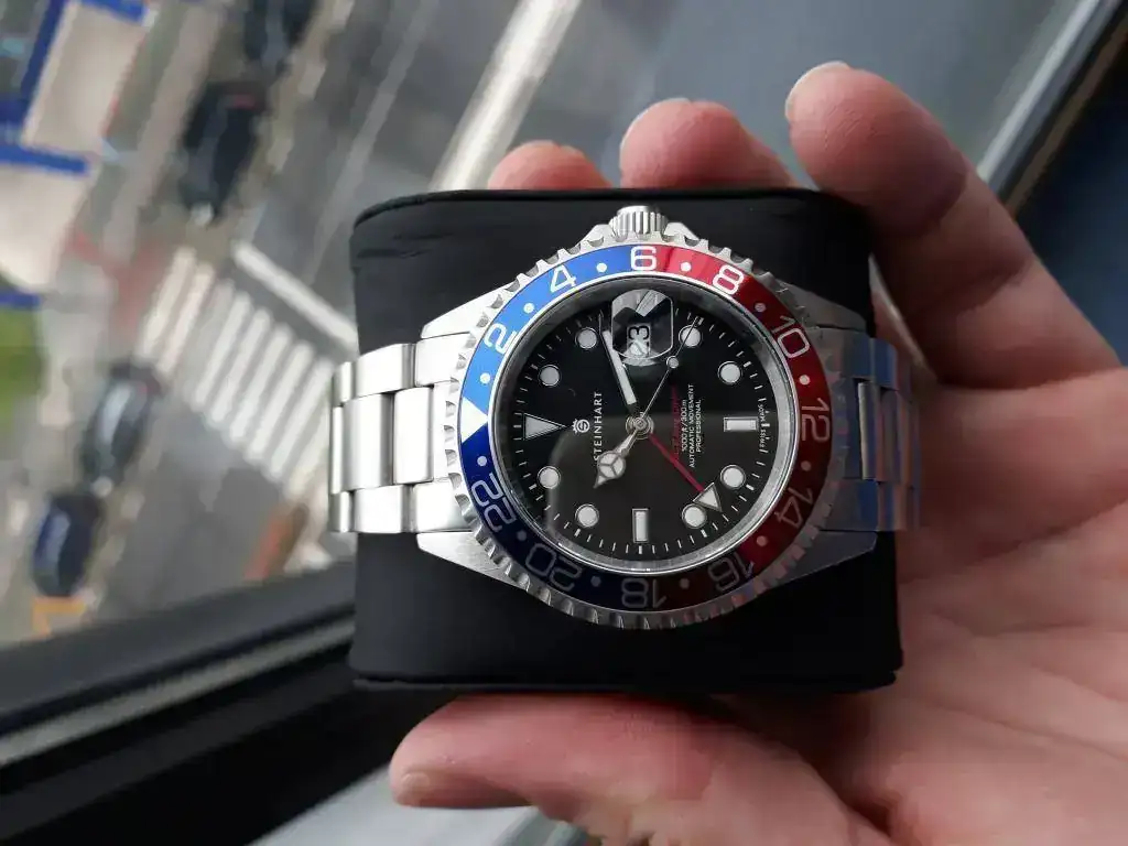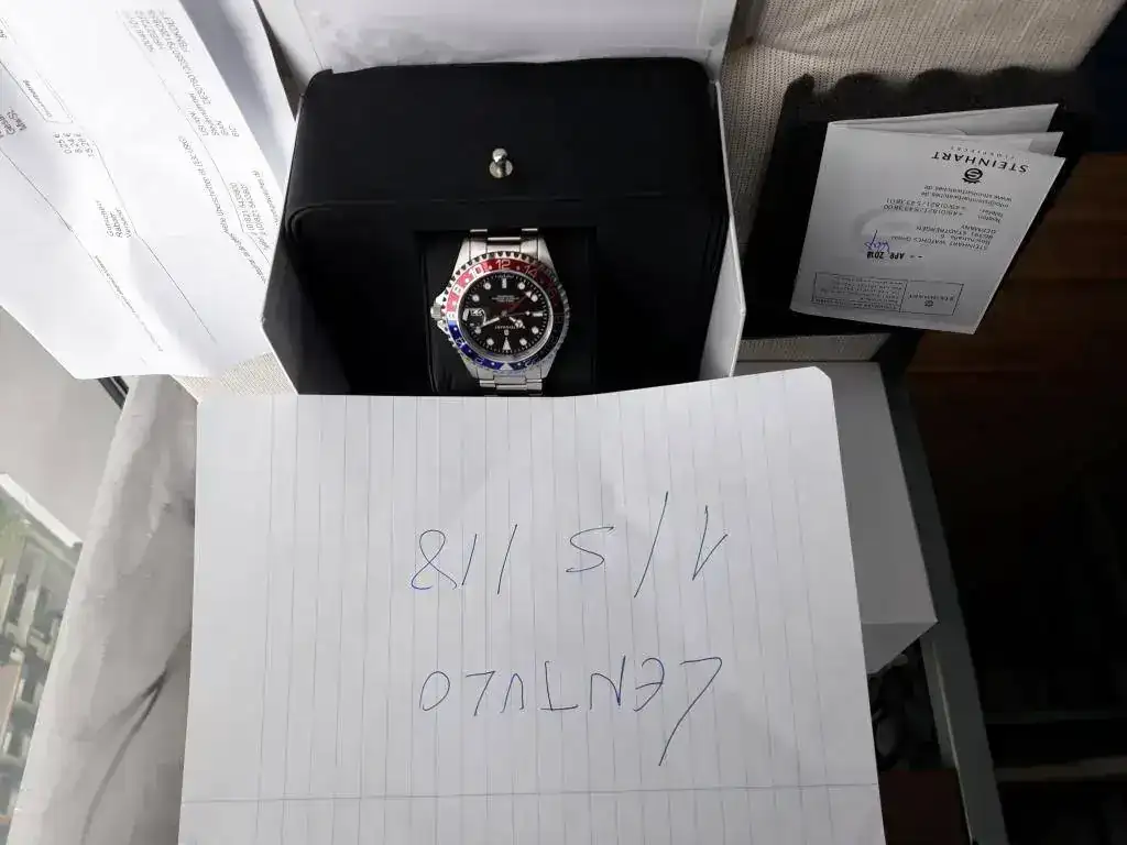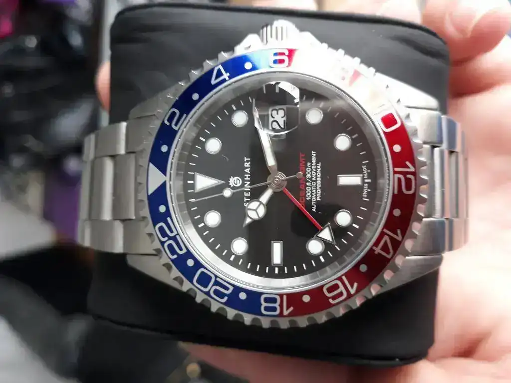 Buenas noches....en mi peculiar mes de abril o mes del descubrimiento de steinhart y por la compra del modelo 500 gmt pongo a la venta el pepsi comprado una semana antes ya q con la venta de este financio la compra del premium asi q no me ofrezcan cambios pq el dinero esta gastado y el precio ajustado,100 euros menos q comprado nuevo.No voy a decir de reestreno por si hay quisquillosos pero está al 95%,lo he usado 4 o 5 dias y tiene una marcha muy buena(-2 segs/dia)mejor q el modelo premium