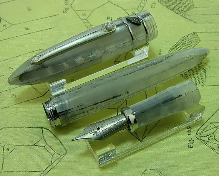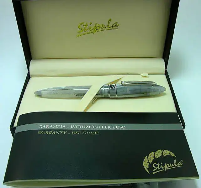 Ofrezco para su venta esta estilográfica STIPULA ICE TITANIO Edición limitada Rey en acrílico gris perla.
