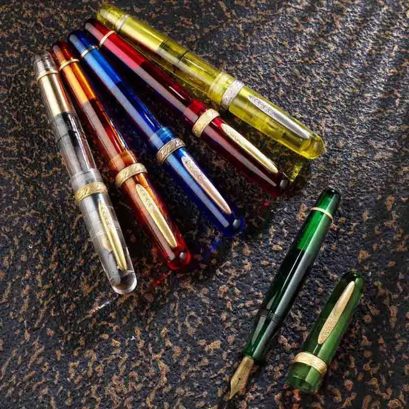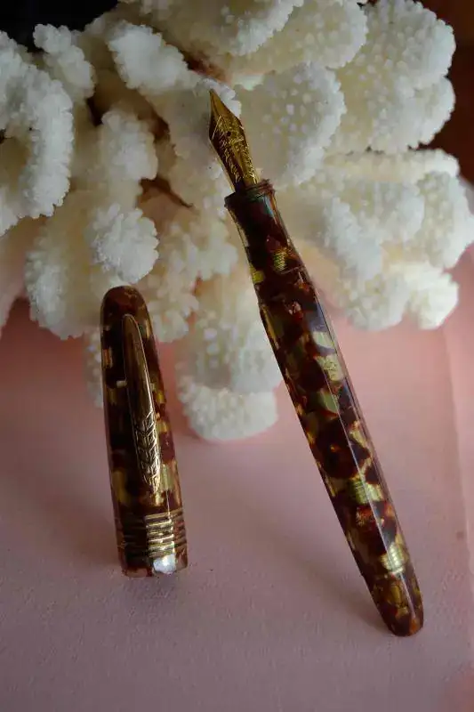 Y para finalizar también tenemos las últimas piezas de una serie limitada a 18 plumas para todo el mundo facetadas y construidas en preciosos celuloides italianos la mayoría, y maderas nobles el resto. (estas piezas se solicitan por encargo)