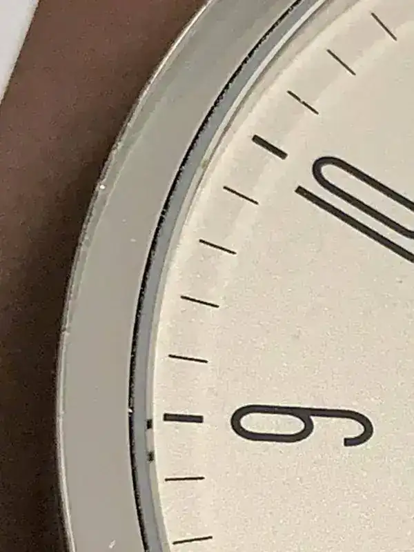 En mi opinión el "daño" más relevante se encuentra en el bisel entre el cinco y el diez, donde hay una pequeñísima "picadura".