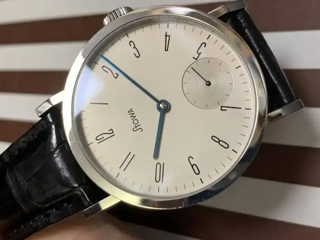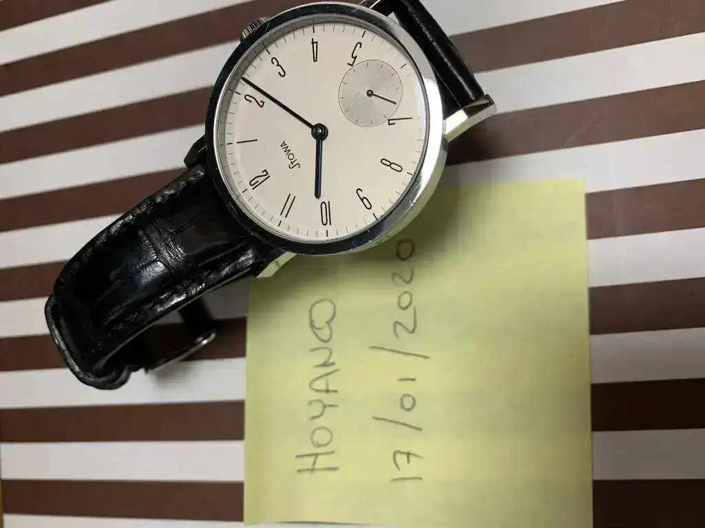 El reloj es una pieza muy especial, puro Bauhaus con un tamaño acorde a los gustos actuales. Se entrega con su estuche original y tarjeta de garantía -caducada- y un juego de agujas negras adicionales, dado que en su momento se ofrecía con ambas y compré las dos, aunque las negras nunca han sido usadas ni el reloj abierto o manipulado.