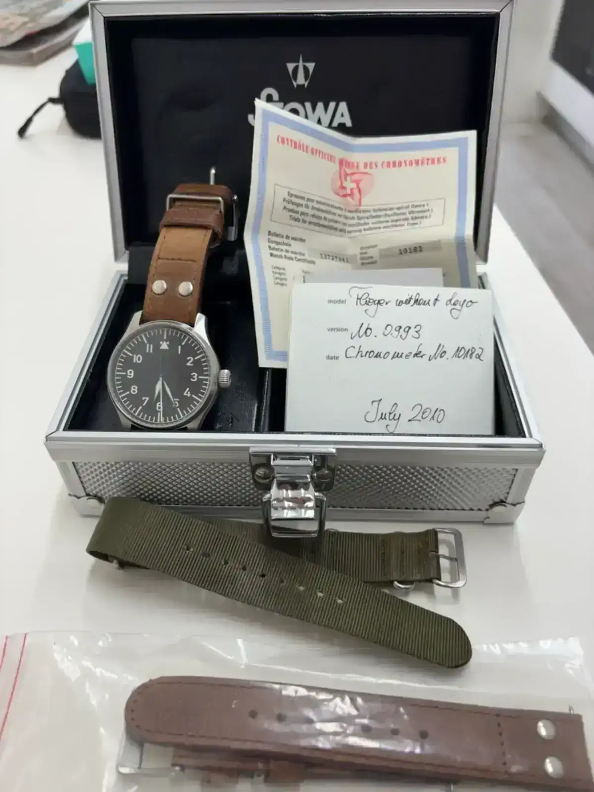 Muy buenas, saco a la venta esta pieza adquirida en su día a un estupendo forero. A pesar del tiempo, está en muy buen estado puesto que no ha tenido mucho uso, en rotación con otros relojes, y siempre en entornos de oficina. Está en perfecto estado de marcha. Incluye caja y documentación original así como correa stowa original de repuesto nueva.