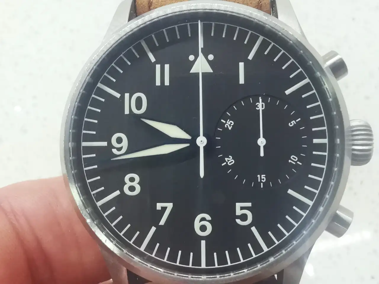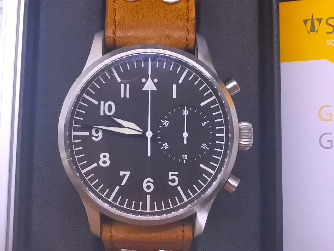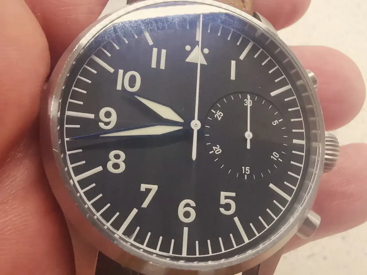 Brazalete: Correa tipo Pilot de piel marrón. 22mm.