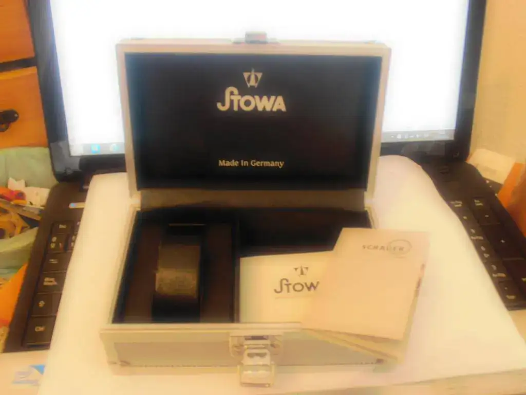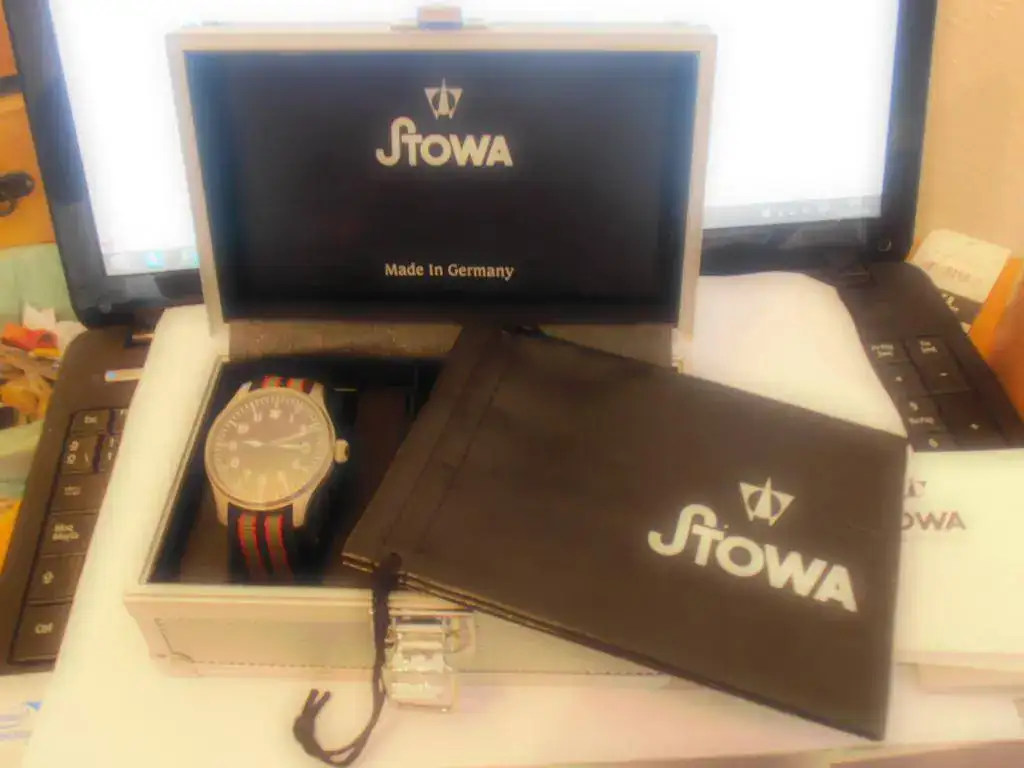 Hola. Poengo a la venta un reloj STOWA NO LOGO / NO DATE . Es un FLIEGER automático que monta calibre 2824-2 TOP DE GAMA, masa oscilante en plata donde figuran los datos del reloj, tornillos azulados al igual que sus agujas horaria, minutero y segundero tornasoladas al fuego. Lleva cristal de zafiro con AR delante y zafiro detrás. Es un WR 50 METROS. Le acompañan, además de su impresionante caja de aluminio, sus libretos, accesorios y publicidad de la marca,dos correas de piel y dos NAToS (una de ellas CANVAS) y la BOND que lleva puesta. Dejo un enlace de la marca con las características del reloj. Como vereís, tiene un PVP de 930€ (STOWA sólo vende en su fábrica o a través de la web.