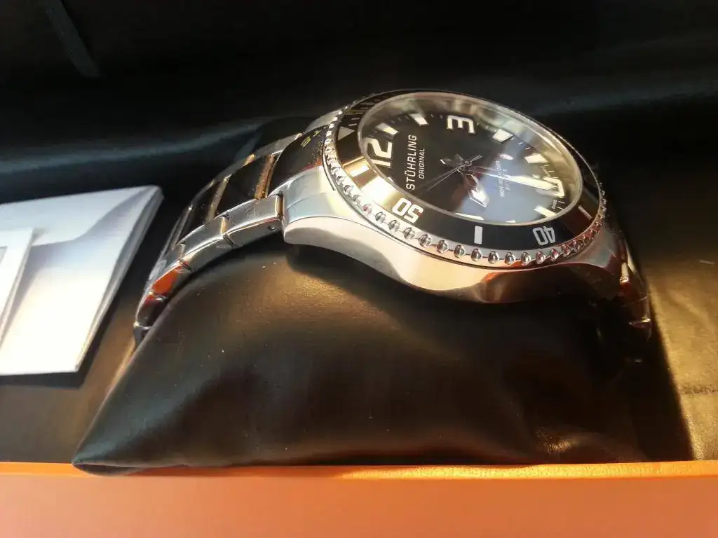 pongo a la venta un sthurling original diver modelo 395.33 B11 comprado a finales de marzo de este año y en perfectísimo estado , conserva intactos los plásticos del armis y trasera. Las características las podéis ver en el siguiente enlace pero para simplificar, 42 mm, 20 ATM, cristal krysterna, cuarzo Ronda 515...