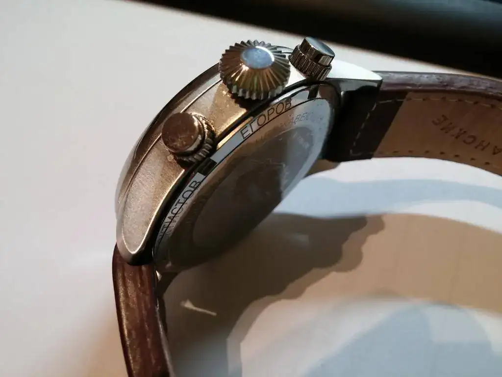 Saca a la venta este rusito que no ha salido a pasear todo lo que yo pensaba. Se trata del Sturmanskie Space Pioneers. Es el primer reloj que fue al espació de la mano, o mejor dicho de la muñeca, de Yuri Gagarin.