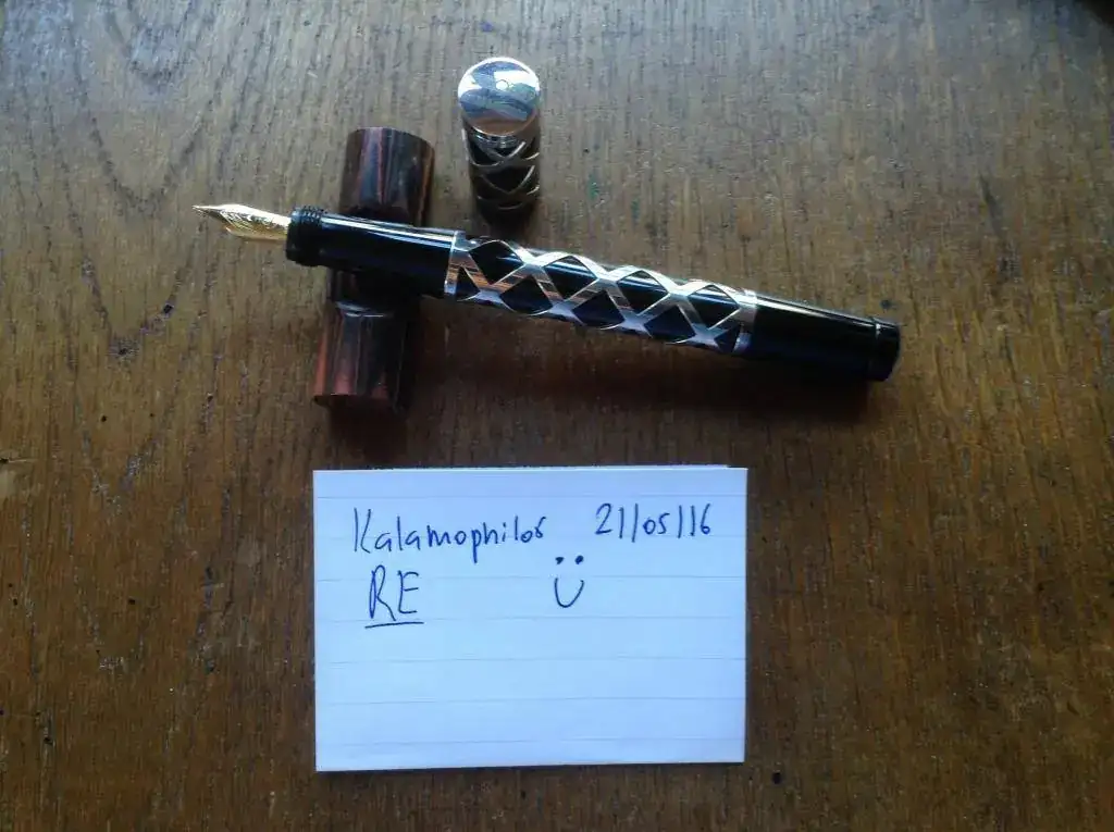 La pluma está en perfecto estado, excepto por algunas microrayaduras en la tapa, que supongo son resultado del deskwear que dicen los sajones. No pulo mis plumas jamás, pero supongo que se pueden pulir si el nuevo dueño quiere: su decisión.
