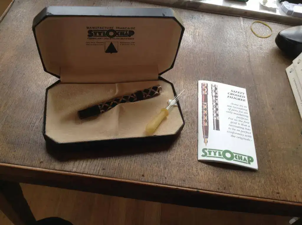 Para decirlo pronto: esta es una pluma safety hecha en los 80's-90's por Stylochap en Francia, usando exactamente las mismas medidas y características de una safety de principios de siglo, pero con materiales modernos.