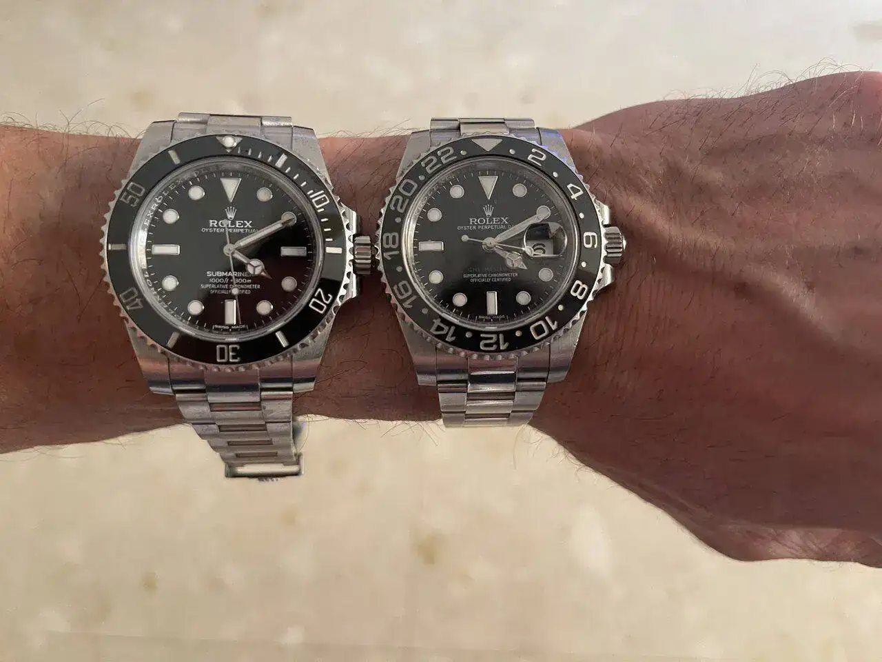 El GMT lleva calendario , para mi eso es importante por lo demas , ambos son negros similitud de caja mismo armis uno WR 200 metros y el otro 100 , dificil eleccion .Pues por enésima vez me vuelvo a encontrar en esta tesitura…