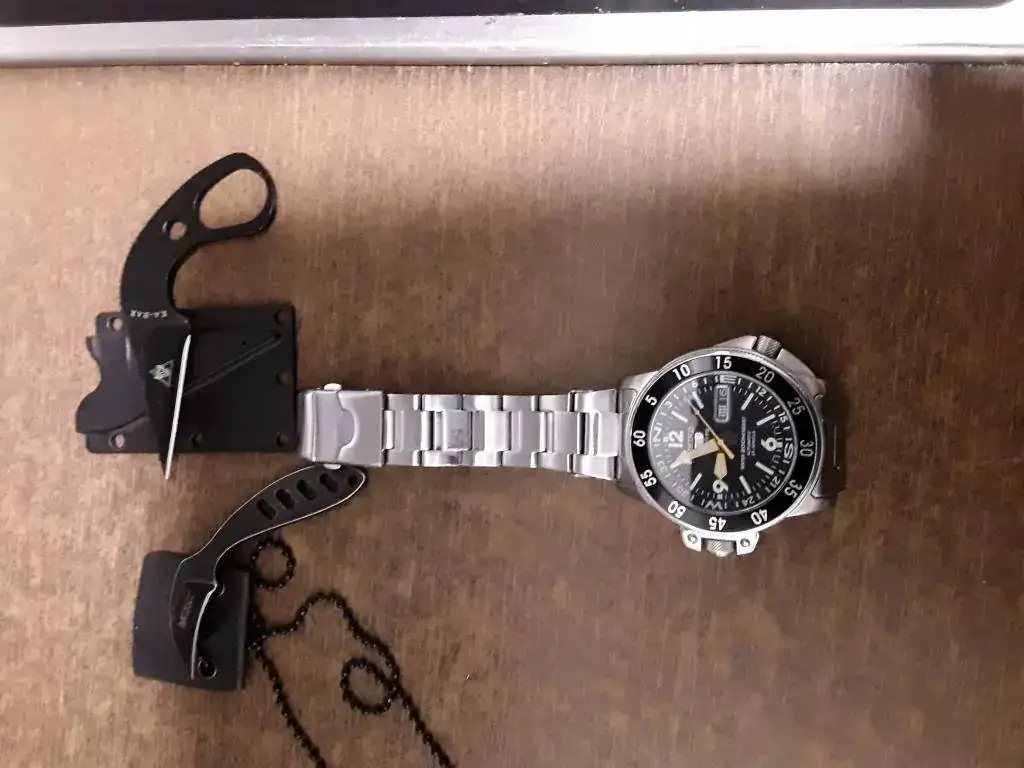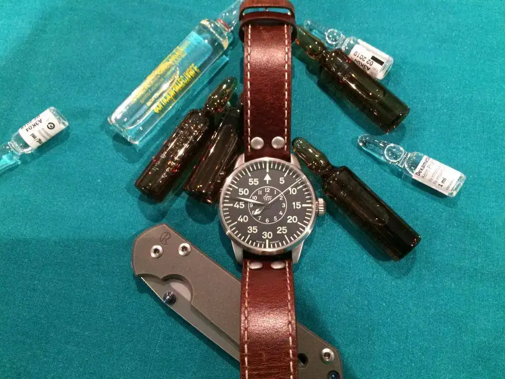 Bueno,solo tengo la famosa Victorinox y considerando algún reloj q le diera juego.......como no fuera el Tissot PR 516 GL esfera azul vintage con armis compacto a la caja ..................................