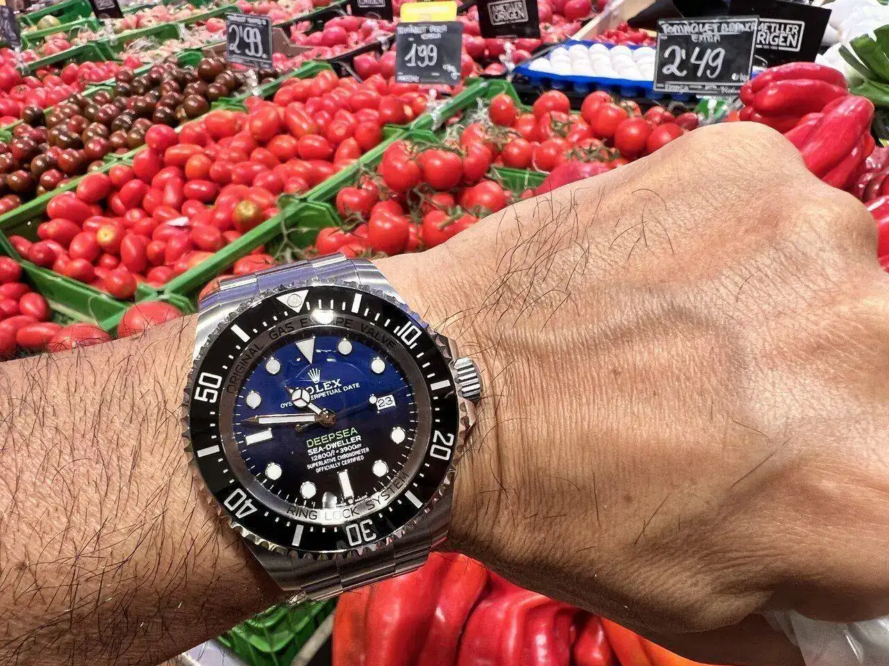 Tazio tambien va a la verdulería "yo tambien", no se me hubiese ocurrido nunca hacerme una foto del reloj allí, naturalmente esto no es una queja.Como usuario de un DeepSea (1mm más grande que el SD) con una muñeca de 16,5 puedo asegurarte que es un reloj cómodo, aunque debo reconocer que me gusta notar mis relojes.