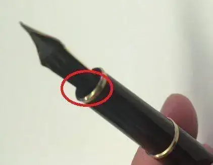 Tengo un MB 144 de los 80 que me encanta, pero me ensucia los dedos. El caso es que la parte del alimentador que se une al cuerpo se encharca de tinta al rato de cargarla (la zona marcada en la foto). Se encharca, pero no chorrea, la tinta se queda ahí. Se puede seguir usando pero mancha los dedos y todo lo que toque.