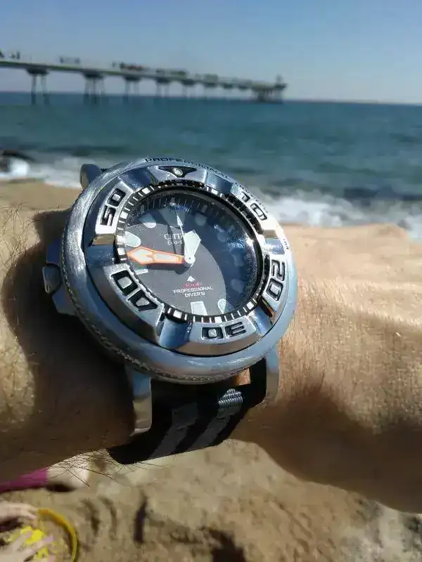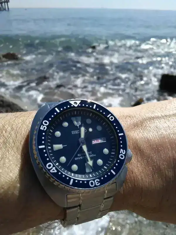 Me gusta bastante el Seiko Tortuga, pero se me hace un poco grande, al menos para mi muñeca. Por supuesto que es cuestión de gustos, pero personalmente no me gusta que un reloj sobresalga tanto y quede al límite (o sobrepase) la muñeca.