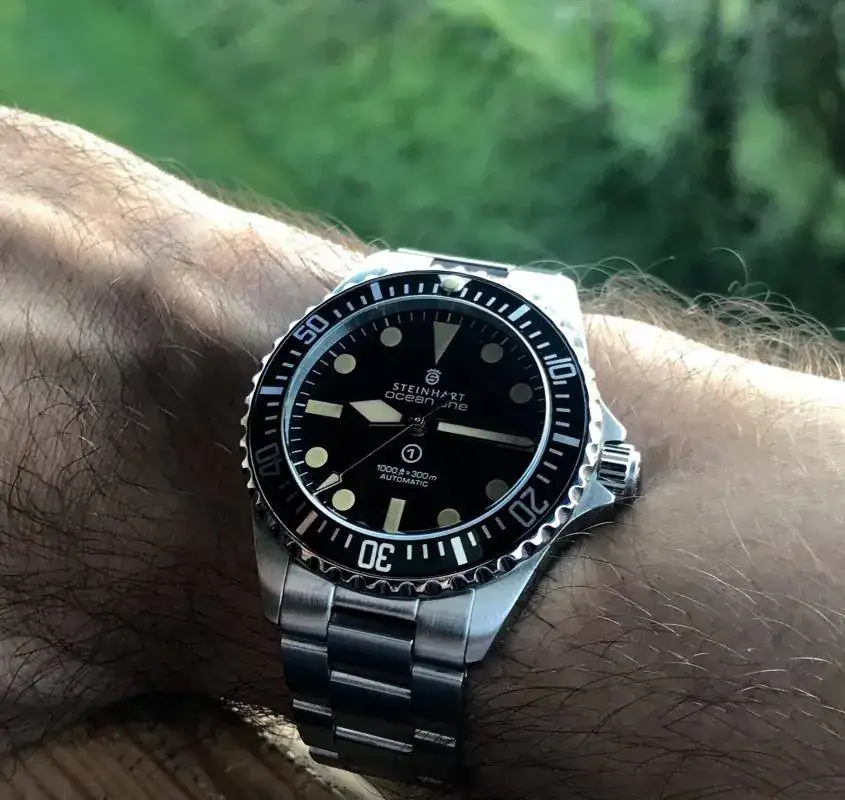 Yo te recomiendo el Steinhart OVM homenaje al Rolex Milsub; más discreto que otros homenajes de la marca a modelos más fácilmente reconocibles pero con la misma estética elegante/deportiva y en este modelo, también militar.